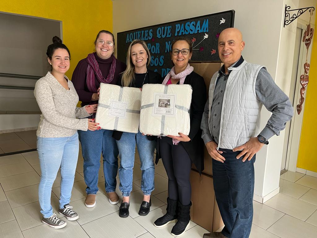 Dando continuidade as ações de ESG de 2023, a Bud realizou a doação de 15 toalhas de banho, 15 toalhas de rosto e 15 cobertores Aspen para a Associação Aprisco de São bento do Sul, que atua no serviço de acolhimento de crianças e adolescentes, atualmente o abrigo tem 18 pessoas acolhidas. Clique no link e confira o registro do momento da entrega.