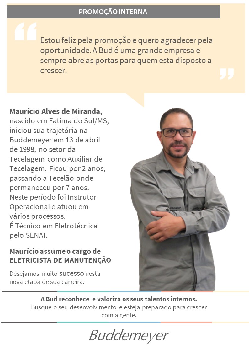 Recursos Humanos • jul 20 • 16:42 Acredite! Você pode chegar onde quiser. Clique aqui e conheça a trajetória de nosso colega Maurício Alves de Miranda, promovido a Eletricista de Manutenção.