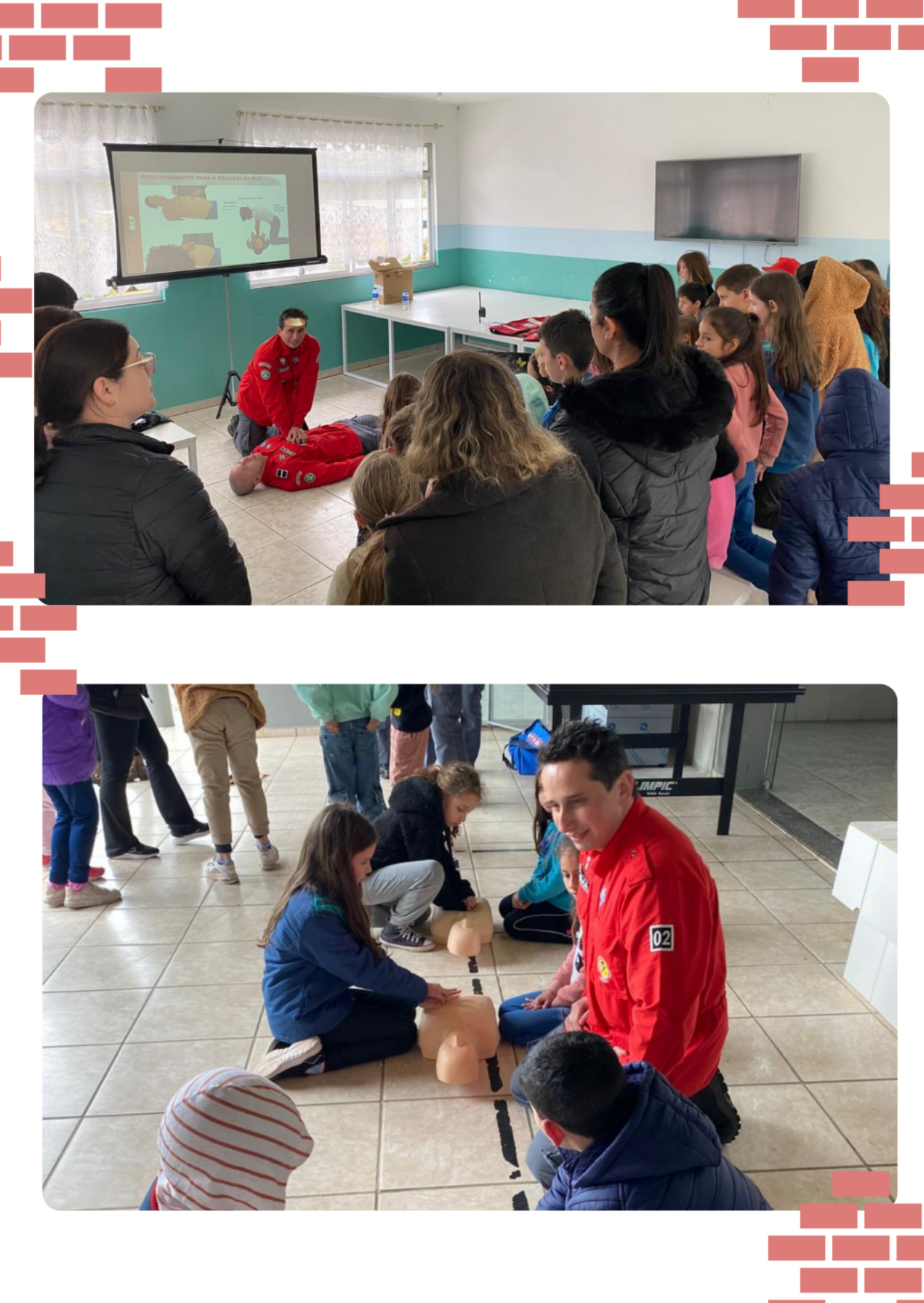 A atividade foi direcionada aos professores e alunos do 3º e 4º ano, com foco na Lei Lucas e nas técnicas de desobstrução de vias aéreas (engasgo), reforçando a importância do preparo em situações de emergência.