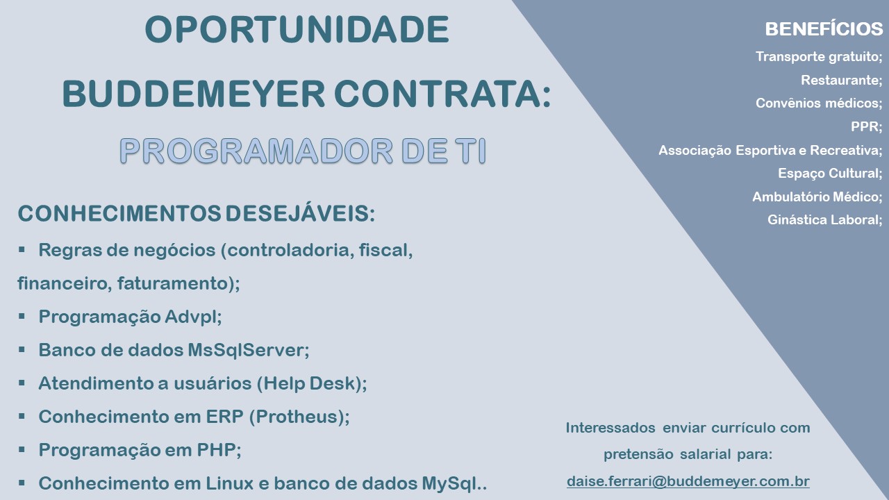Colaborador, oportunidades com exigências técnicas específicas são abertas externamente, mas seguindo um de nossos valores que é a transparência, divulgaremos estas vagas para que você possa indicar amigos e/ou familiares. Clique aqui e confira!