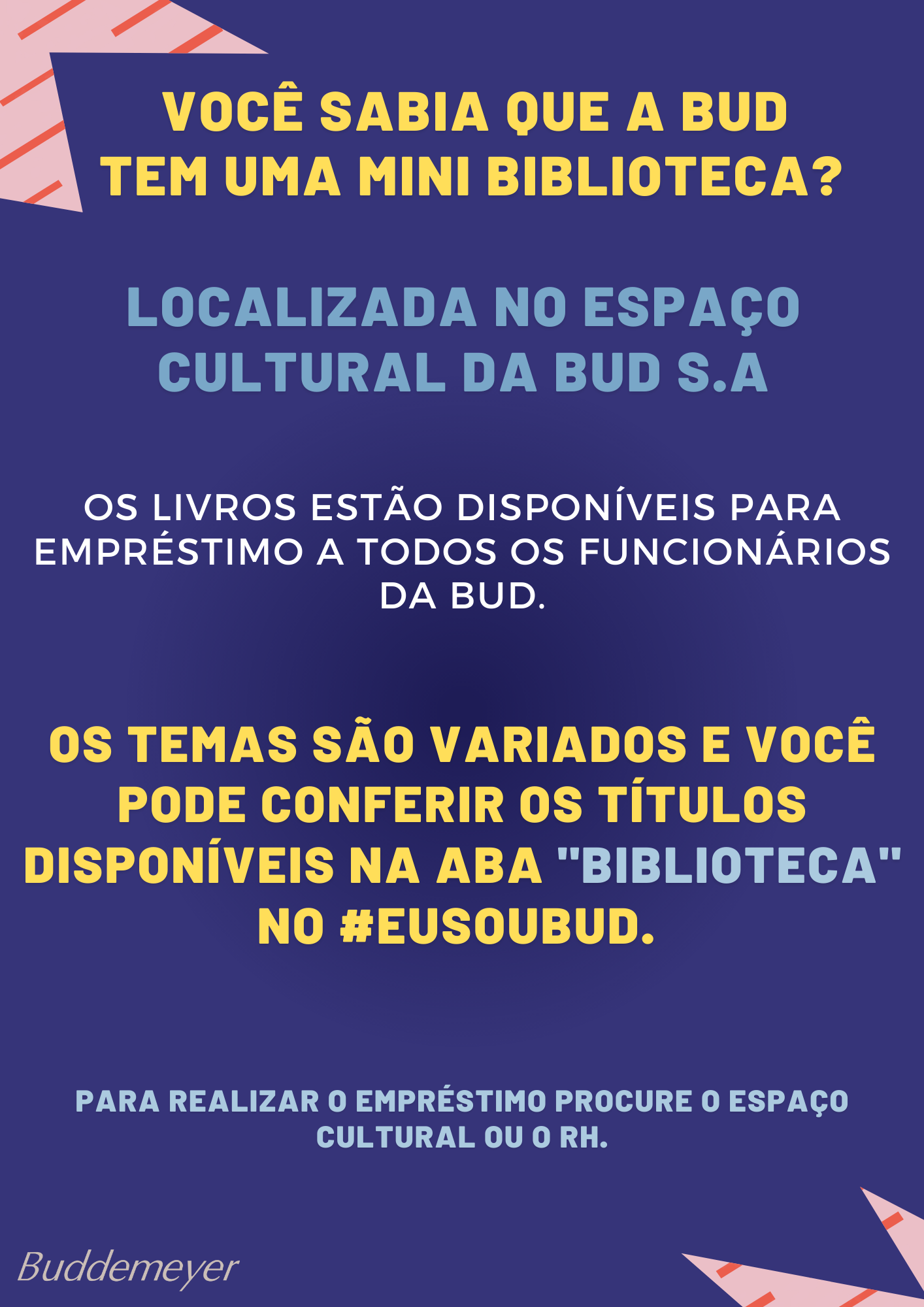 Recursos Humanos • set 08 • 17:10 Biblioteca BUD Você sabia que a Bud tem uma mini biblioteca? Clique no link e confira.