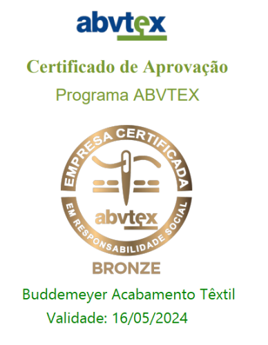 Certificado de Aprovação ABVTEX – Acabamento Têxtil – Validade em 16/05/2024