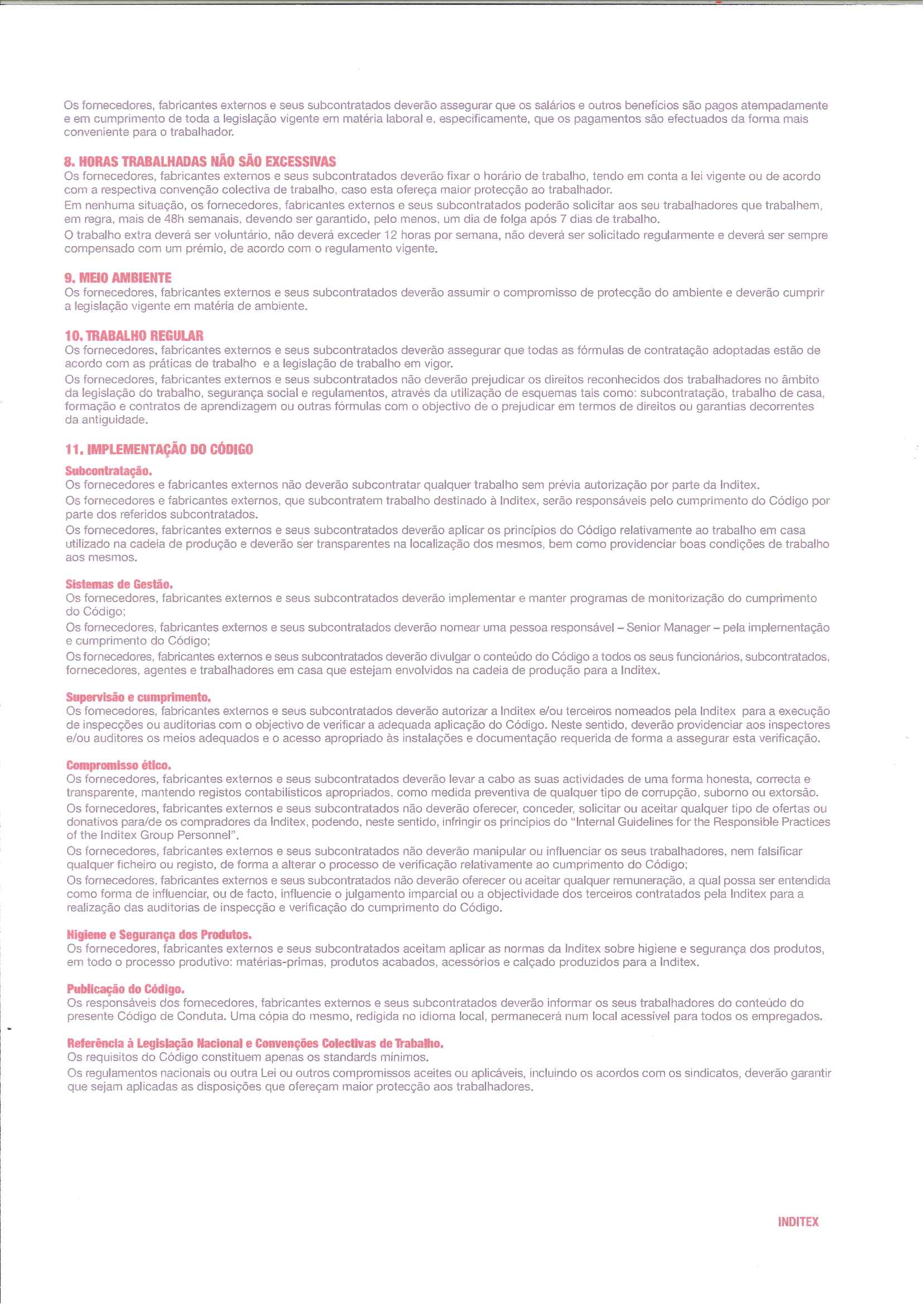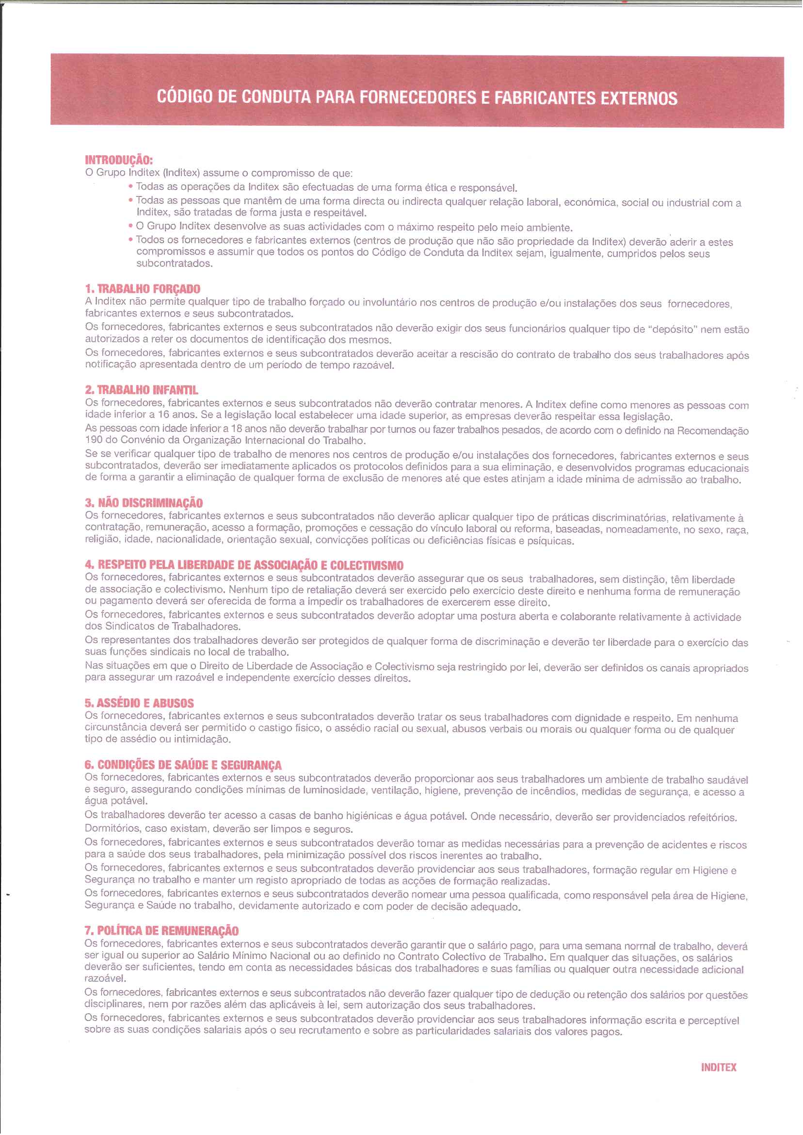 INDITEX- Código de Conduta para Fornecedores e Fabricantes Externos.