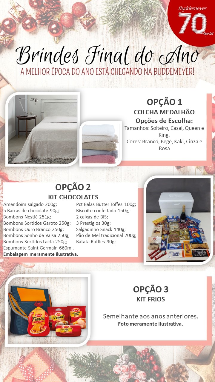 A melhor época do ano está chegando, o Natal, trazendo toda a magia e brilho que apenas ele tem! Que tal escolher qual brinde irá ganhar? Clique no link e confira quais as opções deste ano. Demais orientações sobre onde escolher, serão dadas por suas lideranças.