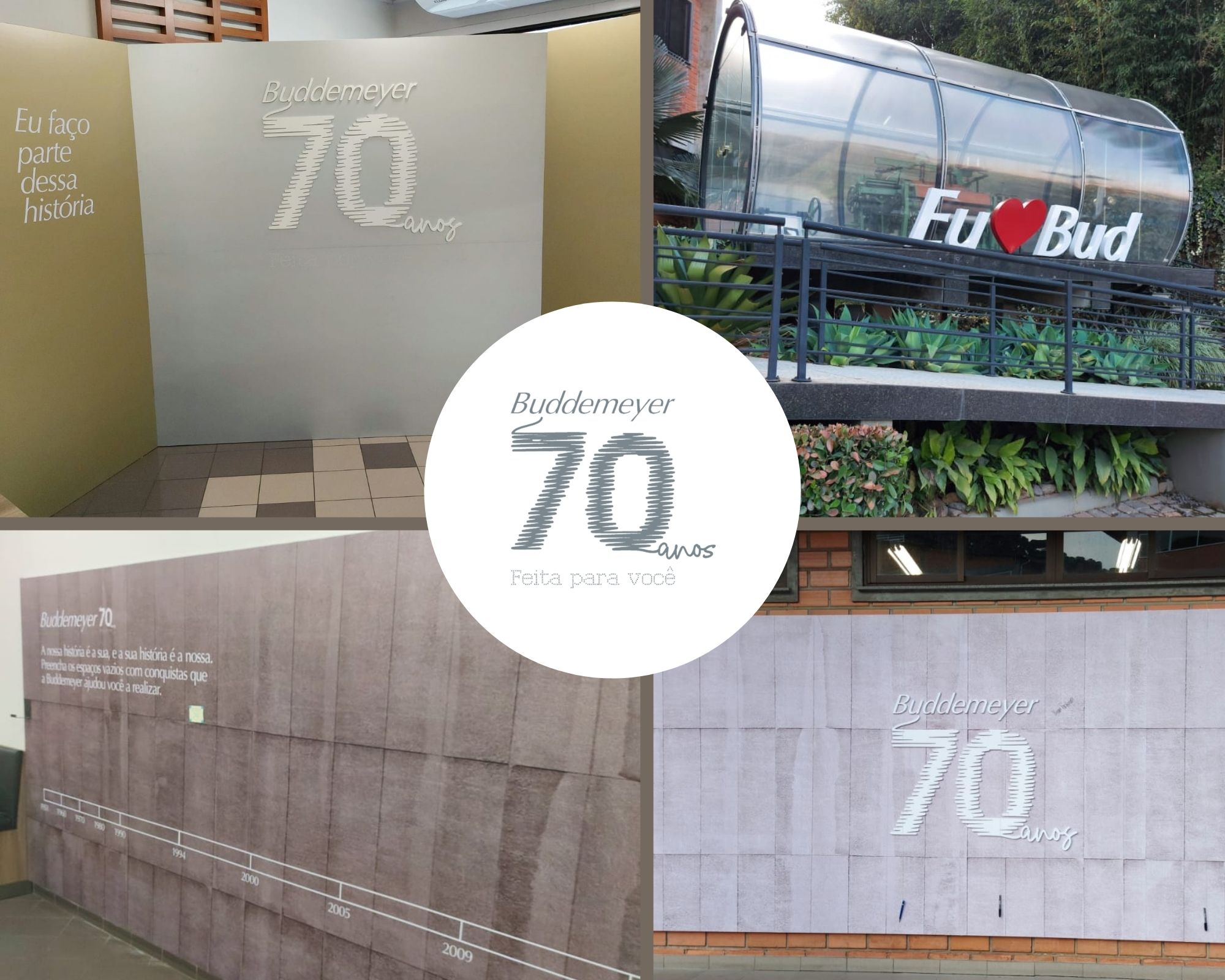 Vocês já devem ter notado que a Bud está com novidades. Em comemoração aos 70 anos, foram distribuídos pelas unidades S/A e Acabamento alguns itens para eternizarmos esta data especial. Aproveite para tirar fotos, deixar recados e registrar sua história nesses 70 anos da Bud. Clique no link e confira onde pode encontrar um desses locais: