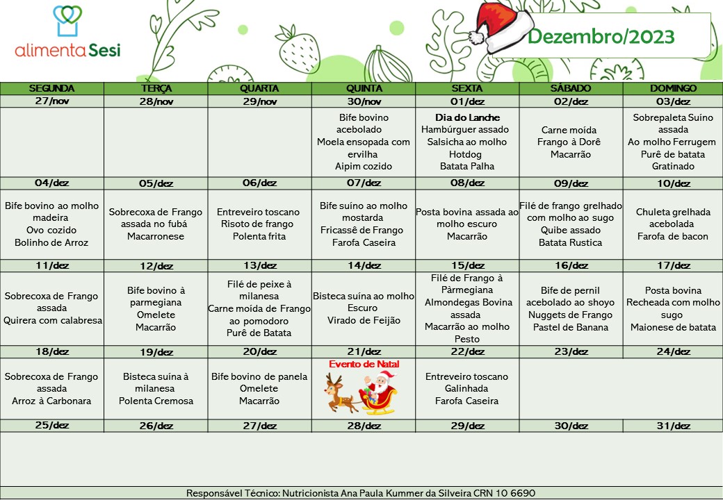 Cardápio Normal | Dezembro