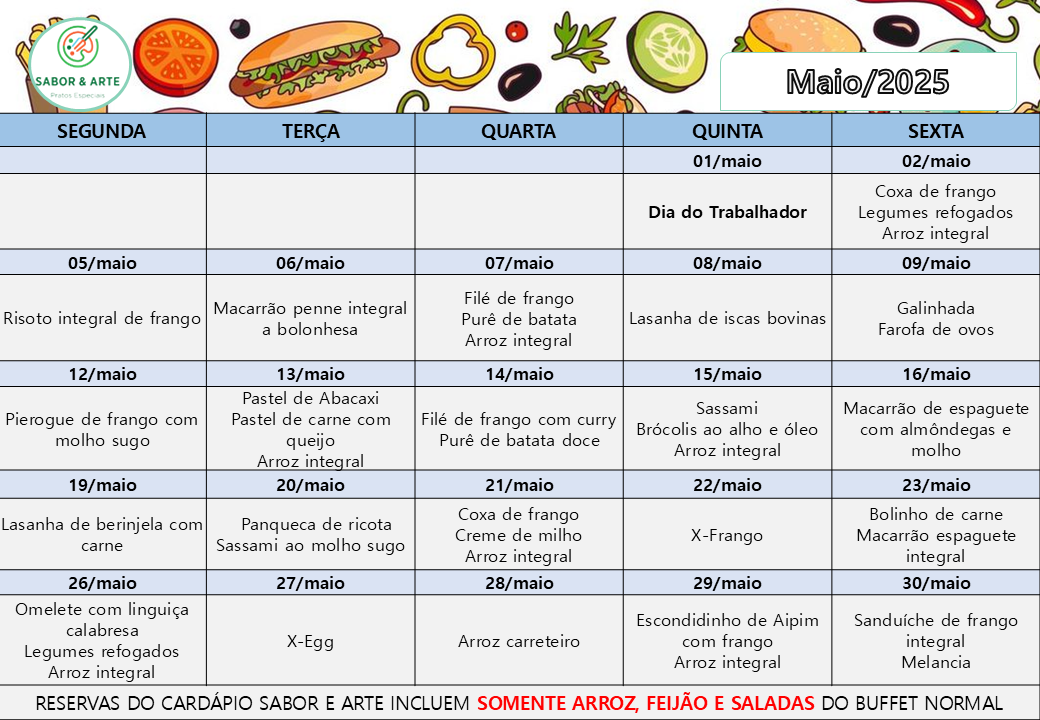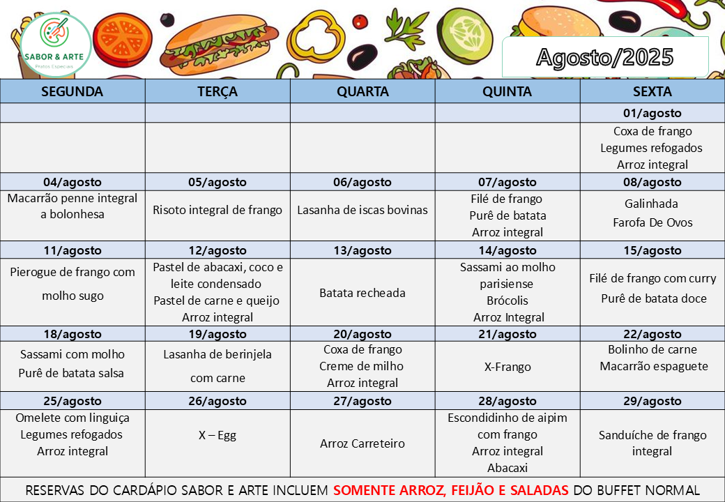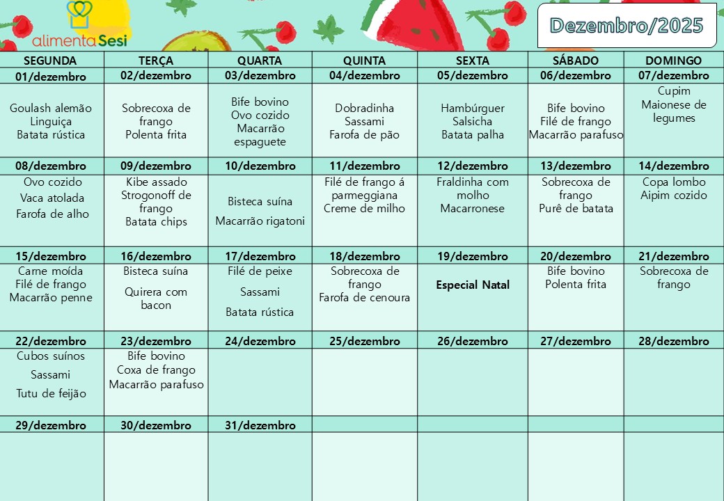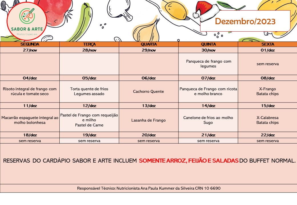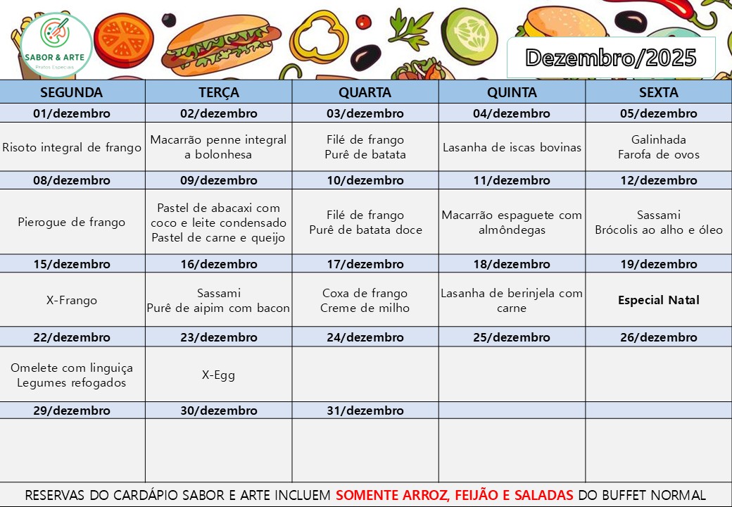 Cardápio Sabor e Arte| Dezembro