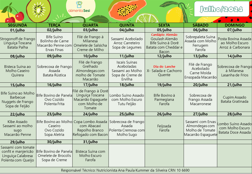 Cardápio Normal| Julho