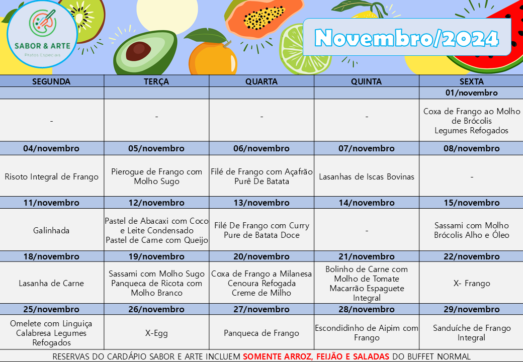Cardápio Sabor e Arte | Novembro