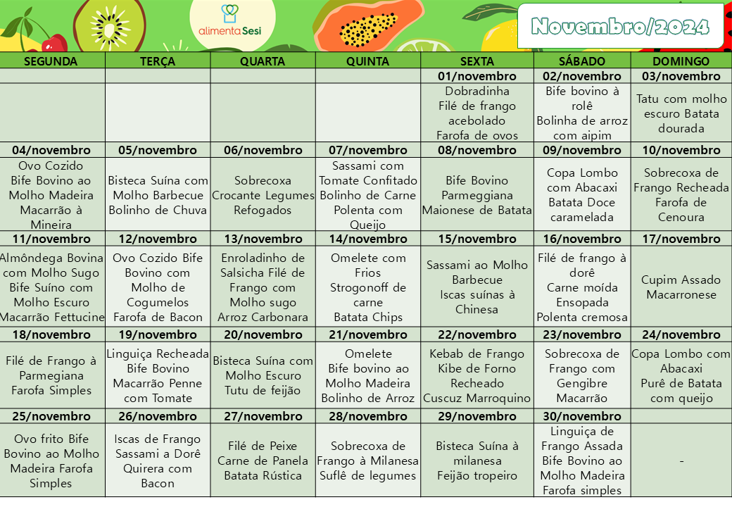 Cardápio Normal | Novembro
