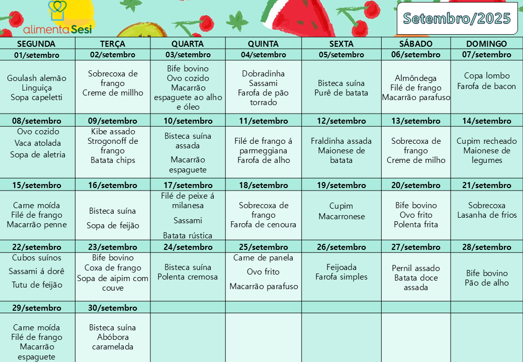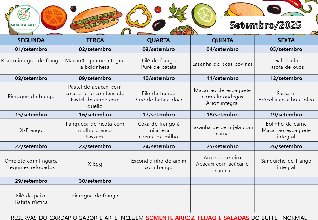 Cardápio Sabor e Arte | Setembro