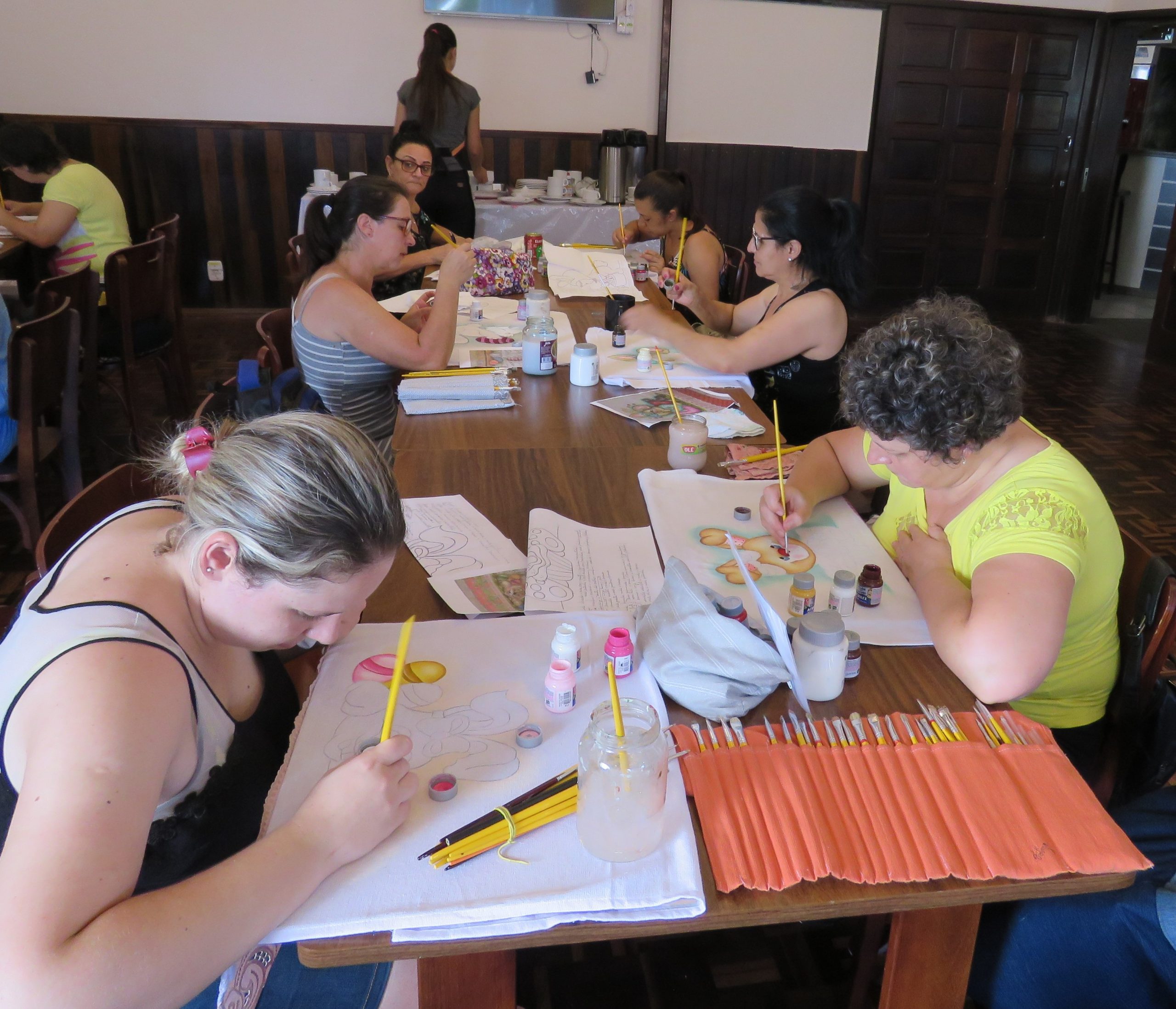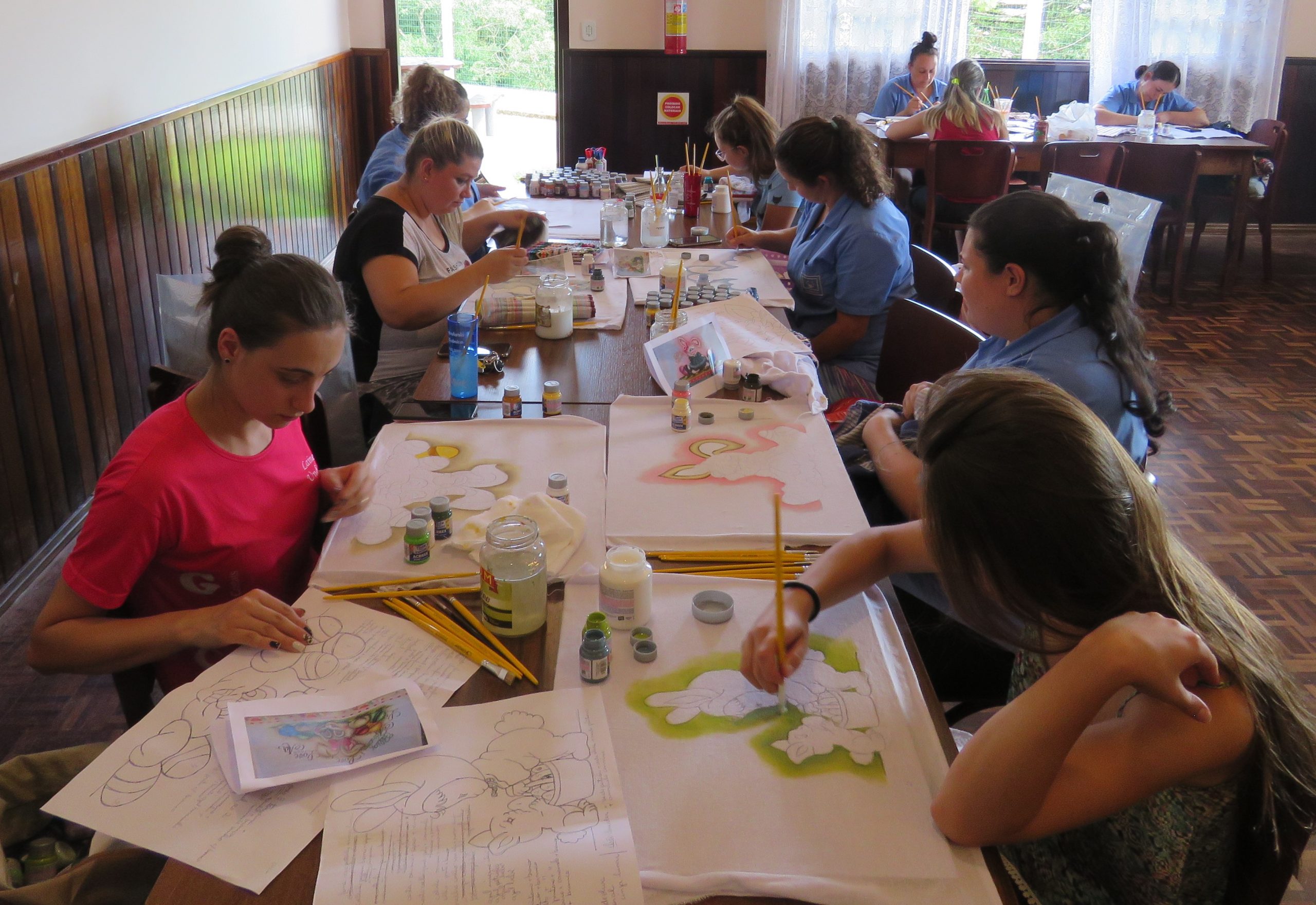 Neste mês de fevereiro, iniciaram em torno de 86 colaboradoras, nas turmas de artesanato e pintura. Elas começaram animadas, realizando trabalhos com tema de Páscoa.