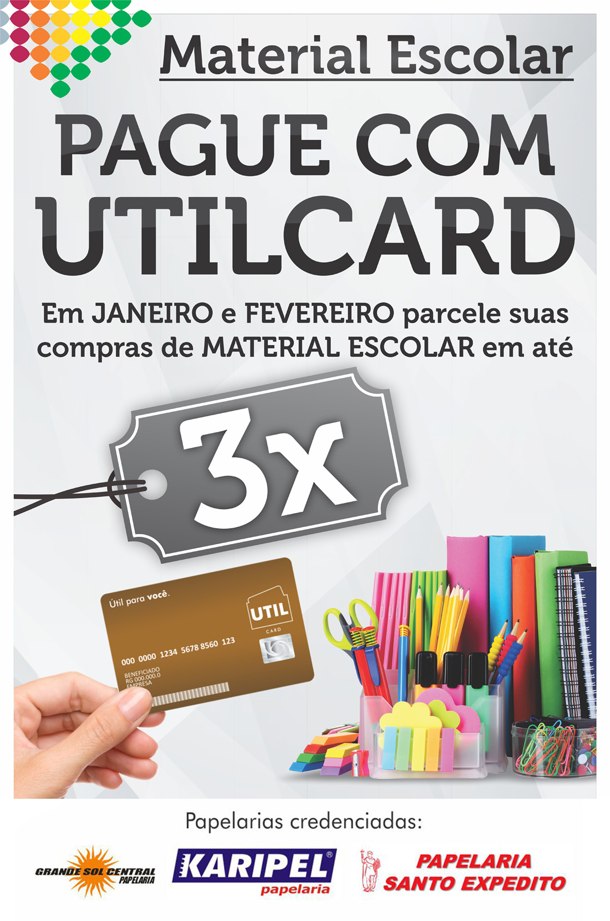 Colaborador, preocupado com o material escolar de seus filhos? Aqui está mais um benefício para você! Durante os meses de janeiro e fevereiro, você pode parcelar as compras de material escolar em até 3x no cartão UTILCARD. Clique aqui e saiba mais.