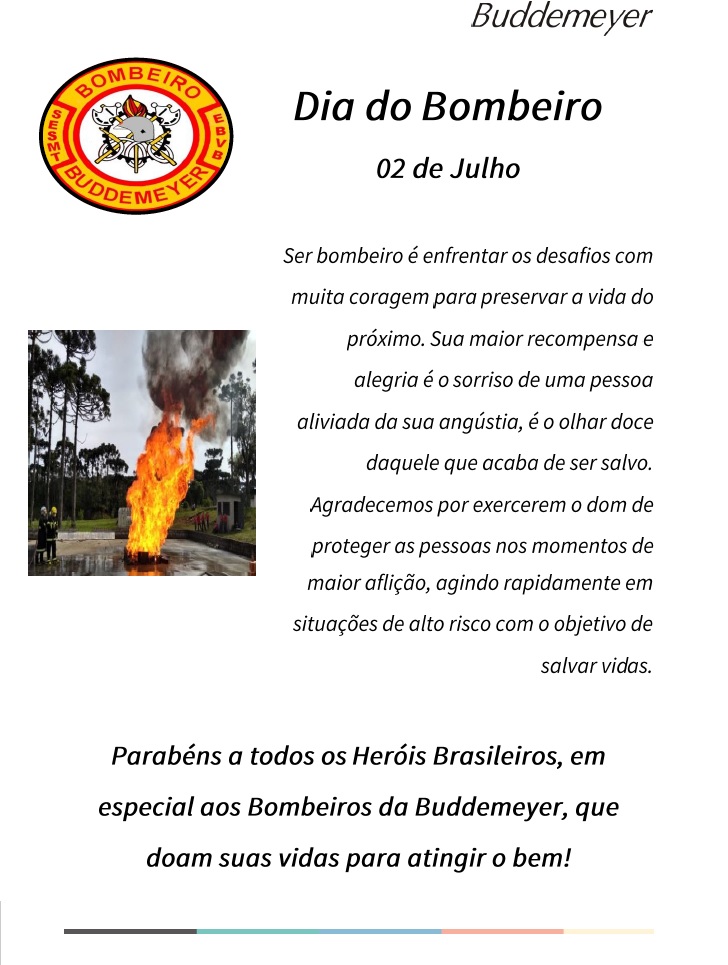 eusoubud • jul 02 • 08:02 Dia do Bombeiro Parabéns a todos os heróis brasileiros, em especial aos Bombeiros Voluntários da Buddemeyer, que neste ano comemoram 30 anos de atuação.