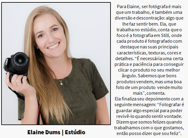 "Fotografar é guardar algo especial para poder revivê-lo", conta Elaine Dums, uma das fotógrafas do Showroom da Bud. Hoje, 08 de janeiro, comemora-se o dia do Fotógrafo: profissional que registra os momentos e os deixam eternizados. Confira aqui o depoimento da Elaine.