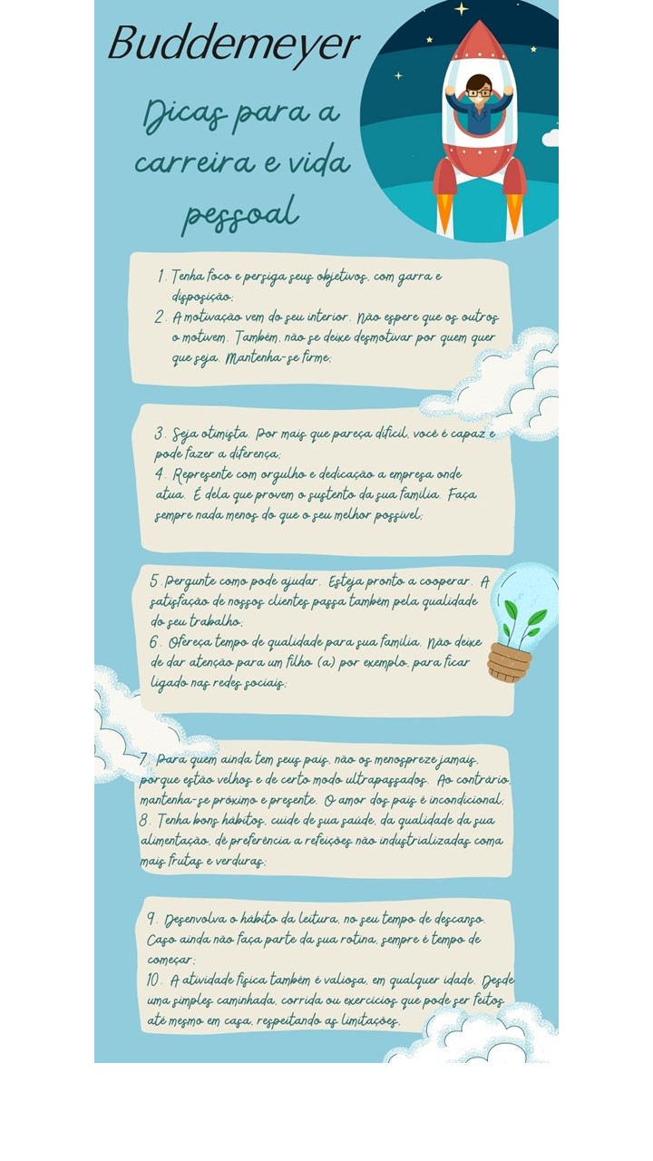 Recursos Humanos • maio 03 • 09:56 Dicas para a carreira e a vida pessoal! Clique e confira dez dicas para a vida profissional e pessoal. Esperamos que goste!
