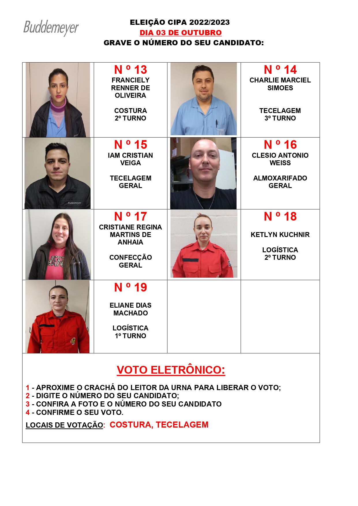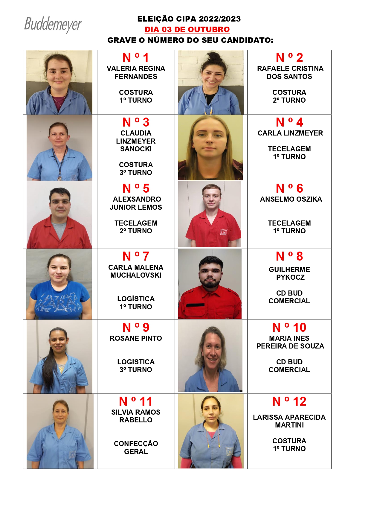 Dia 03 de outubro acontecerá na BUD S/A a eleição da CIPA 2022. Clique no link e confira o número dos candidatos e o local de votação.