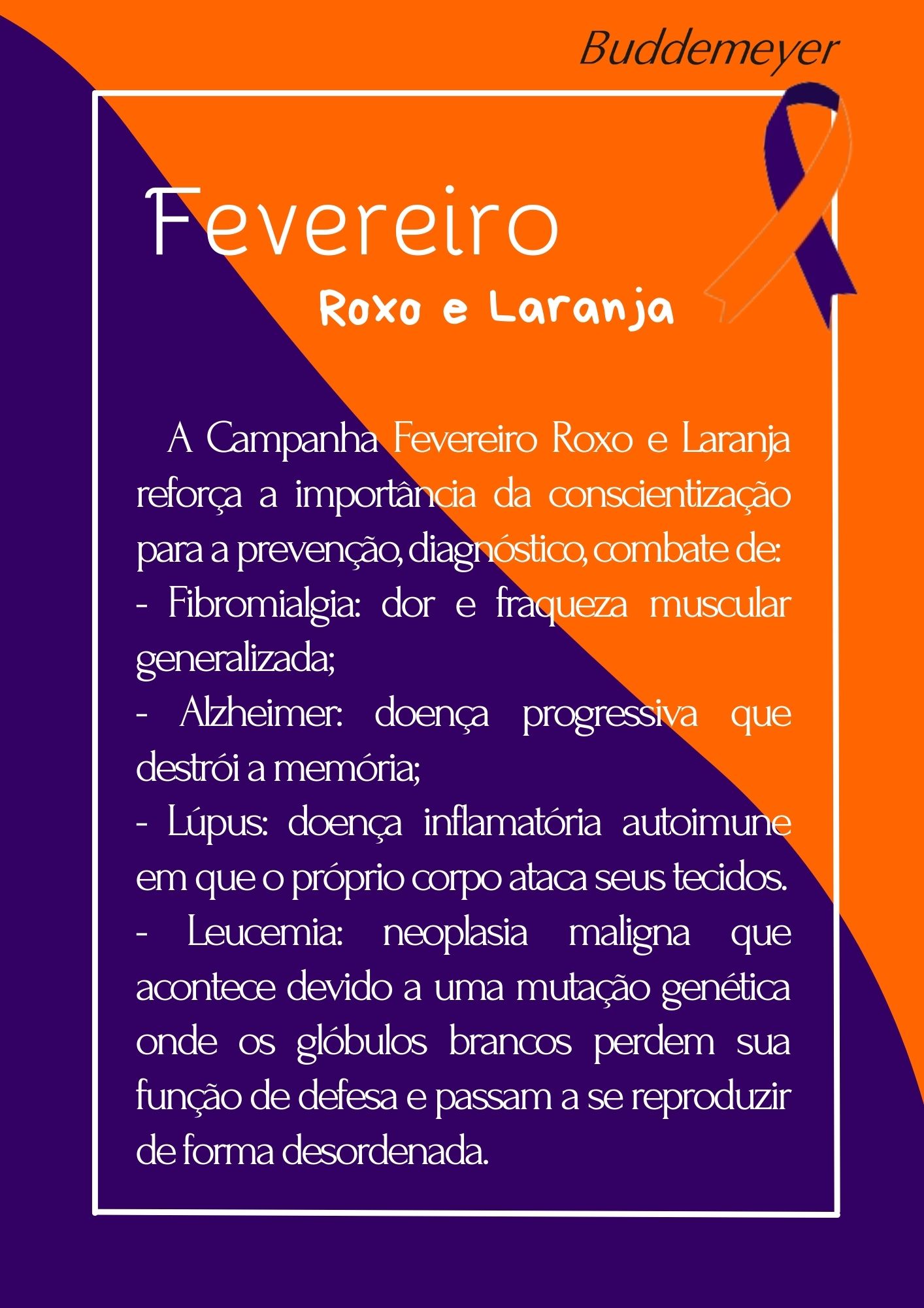 Esse mês a Campanha Fevereiro Roxo Laranja ganha destaque, voltada para a conscientização e tratamento de algumas doenças. A cor roxa conscientiza sobre Lúpus, Alzheimer e Fibromialgia. Já a cor laranja alerta sobre a Leucemia. Em parceria com a Gestão da CIPA 2021/2022 preparamos um post que fala um pouco sobre essas doenças. Clique no link e confira!