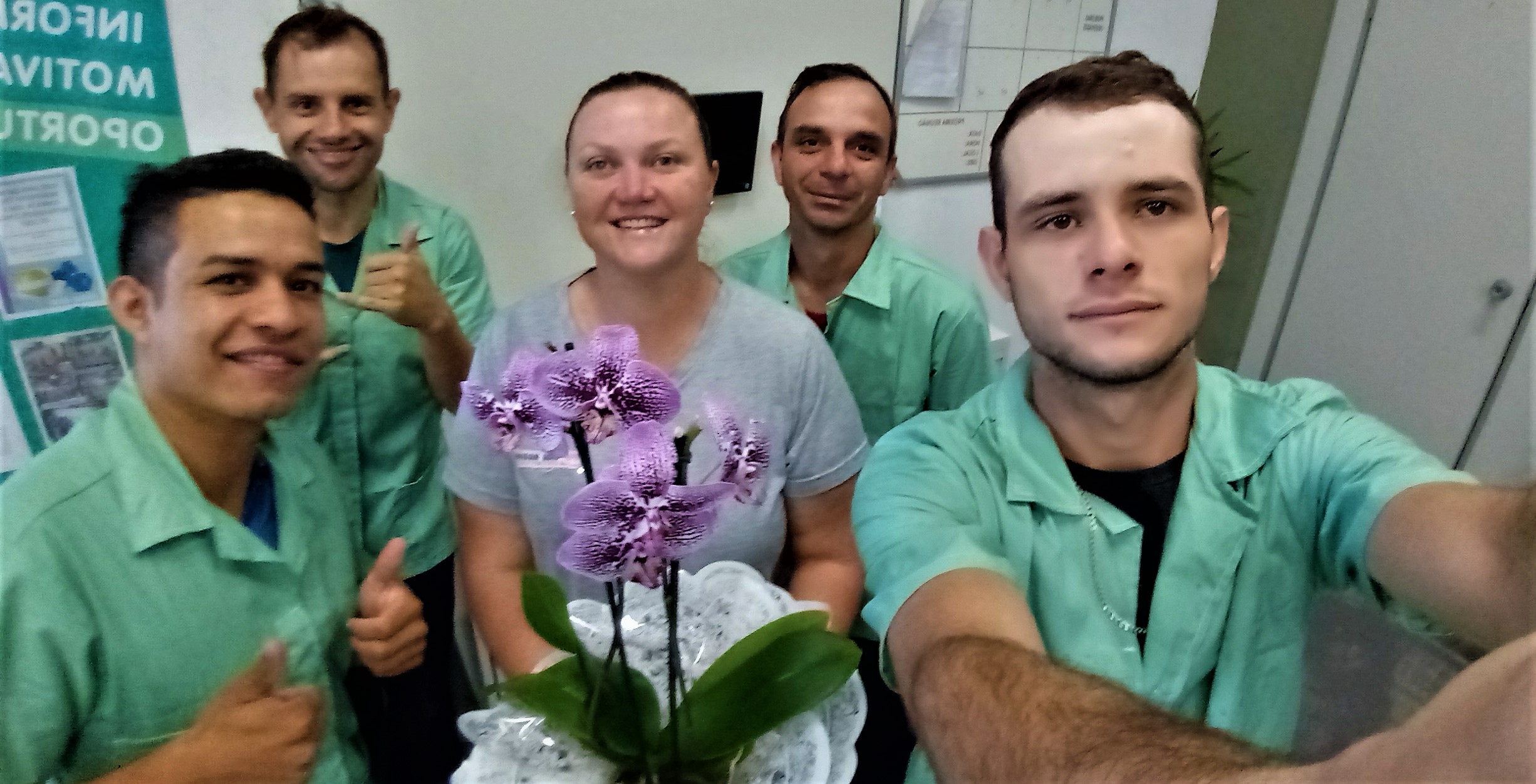 eusoubud • mar 14 • 16:16 GMC da Tinturaria Homenageia Colaboradora O GMC da Tinturaria entregou uma flor para a única mulher do setor no 1º turno, pelo Dia Internacional da Mulher.