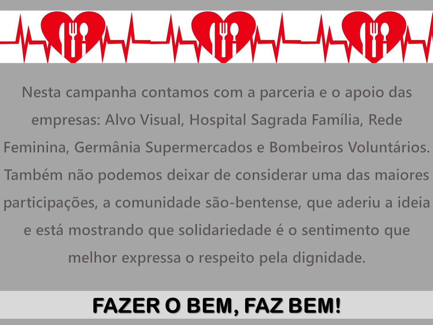 Nossos bombeiros voluntários colaborando ativamente na campanha FAZER O BEM, FAZ BEM!