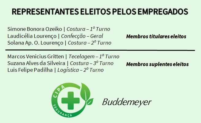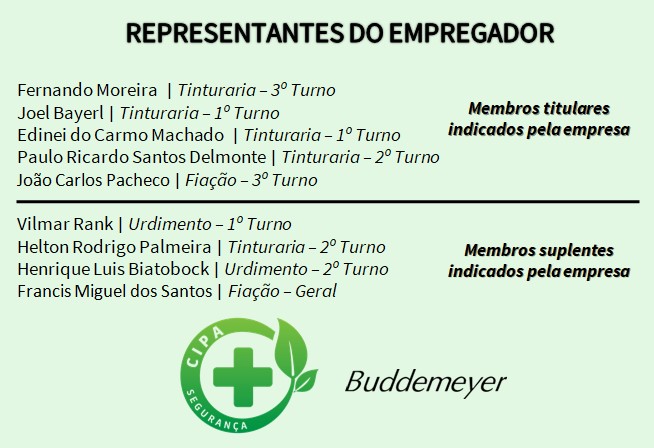 Novos integrantes das CIPAS Buddemeyer Gestão 2020/2021