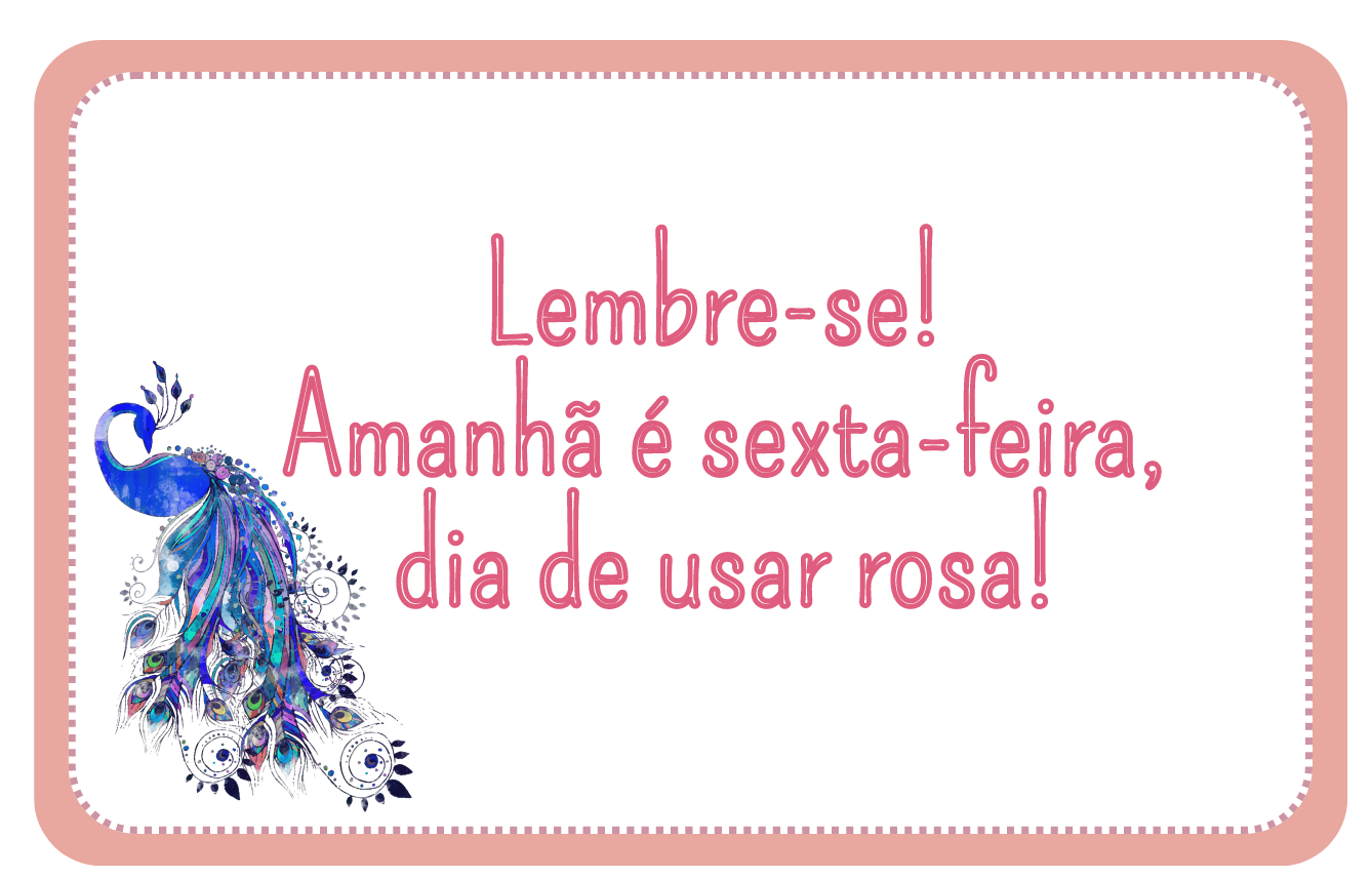 Recursos Humanos • out 20 • 16:26 Outubro Rosa – Simbologia do Pavão Você sabe qual é a simbologia do Pavão? Clique no link e confira. E não se esqueça, amanhã é dia de usar rosa!