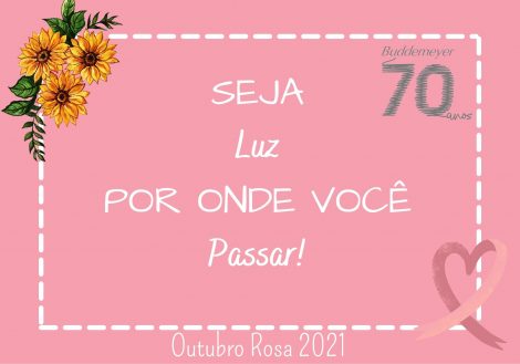 Chegamos a mais um mês de Outubro e mais uma vez nos engajamos na Campanha Mundial de PREVENÇÃO DO CANCÊR DE MAMA. Neste ano a frase do slogan da Campanha é: SEJA LUZ POR ONDE VOCÊ PASSAR, esta se remete ao Girassol e seu significado. Estamos preparando um mês de muitas novidades. Clique no link e confira o cronograma OUTUBRO ROSA 2021 DA BUD.Recursos Humanos
