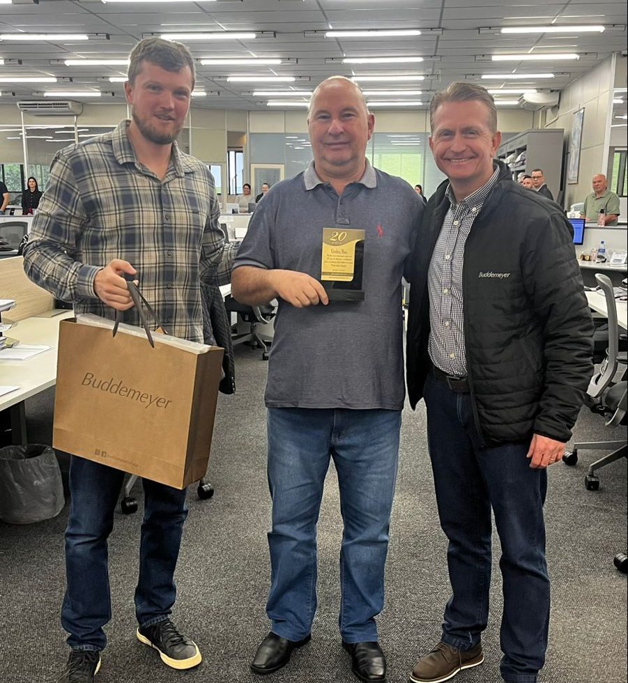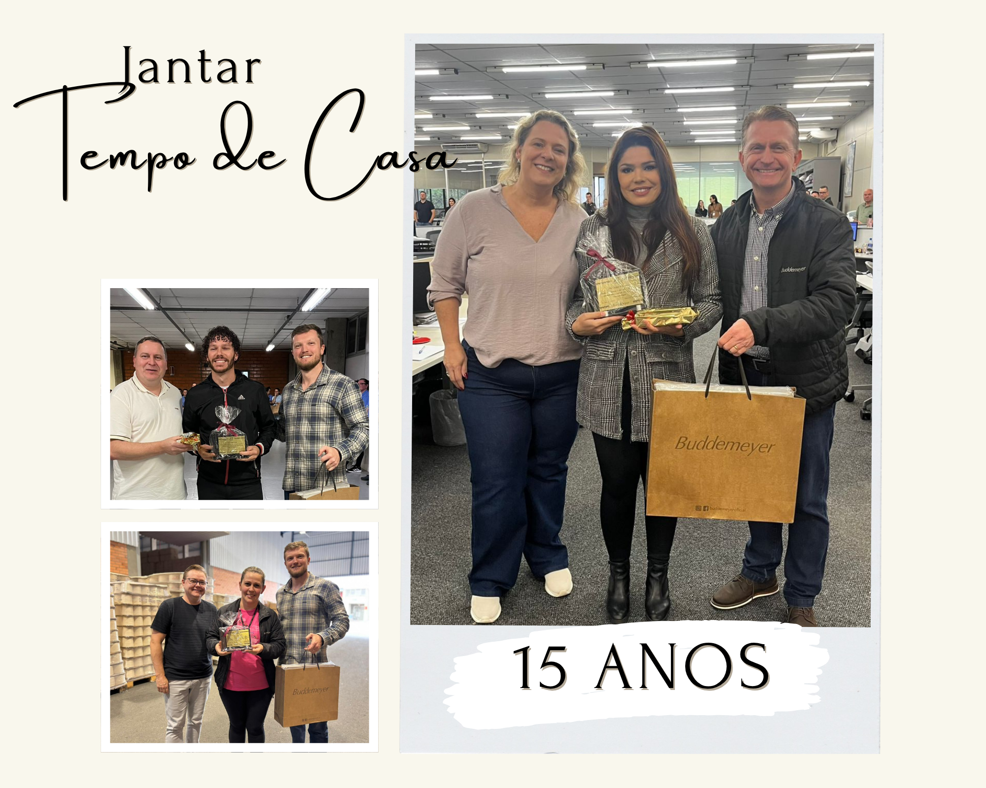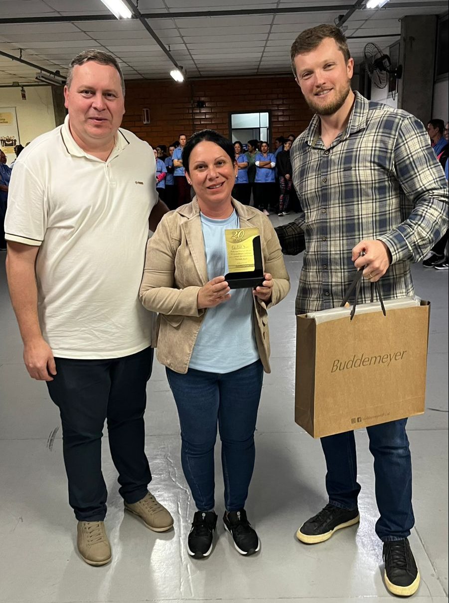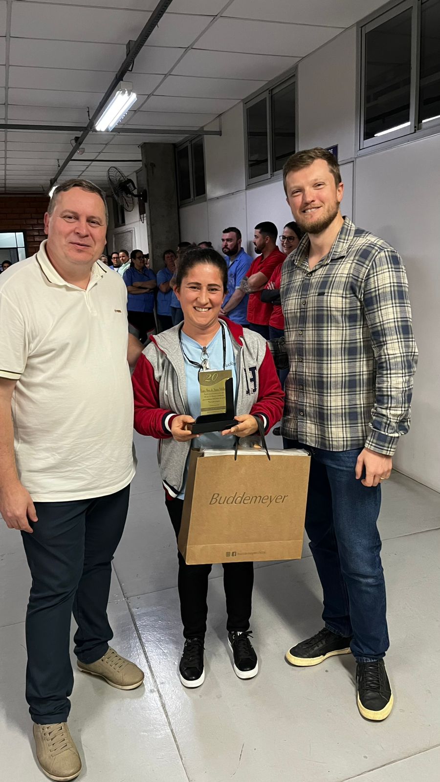 Na última semana, as homenagens por tempo de casa continuaram na Buddemeyer, celebrando os colaboradores que completaram 5, 10 e 15 anos de dedicação. A empresa agradece a cada um por escolher, todos os dias, fazer parte dessa história, contribuindo com comprometimento, esforço e entusiasmo. Confira as fotos das entregas realizadas nos setores!