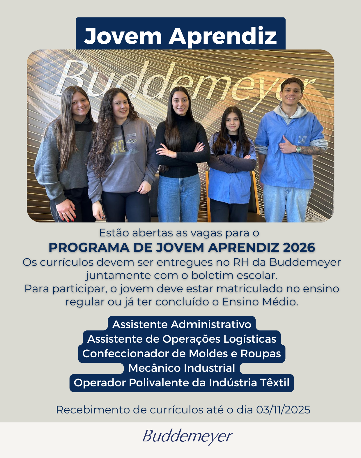 A Buddemeyer está com as inscrições abertas para o Programa Jovem Aprendiz!