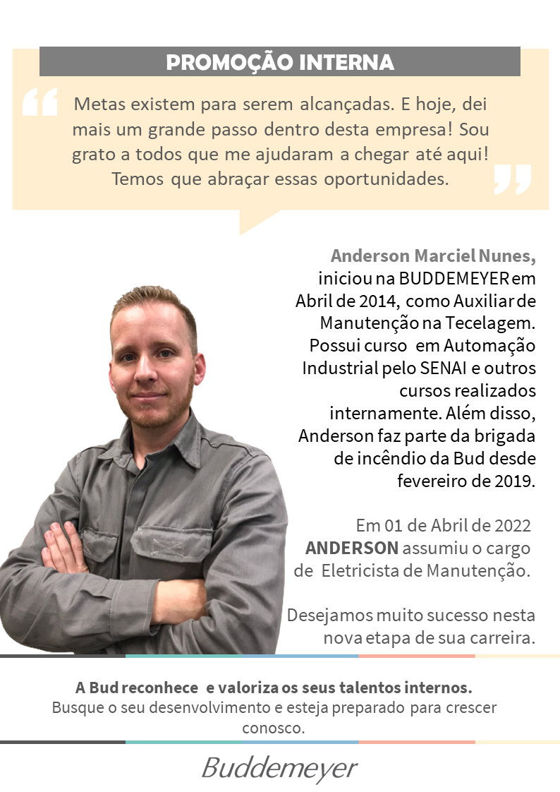 Recursos Humanos • jun 13 • 13:23 Promoção Interna Clique no link e confira a trajetória do Anderson na BUD.