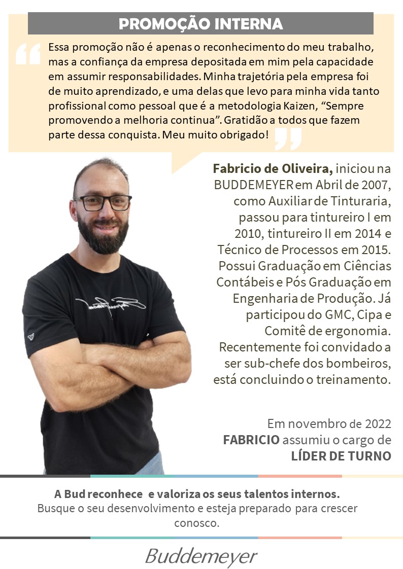 Recursos Humanos • mar 30 • 09:34 Promoção Interna- Fabricio de Oliveira Clique no link e confira a trajetória do nosso colega Fabricio.