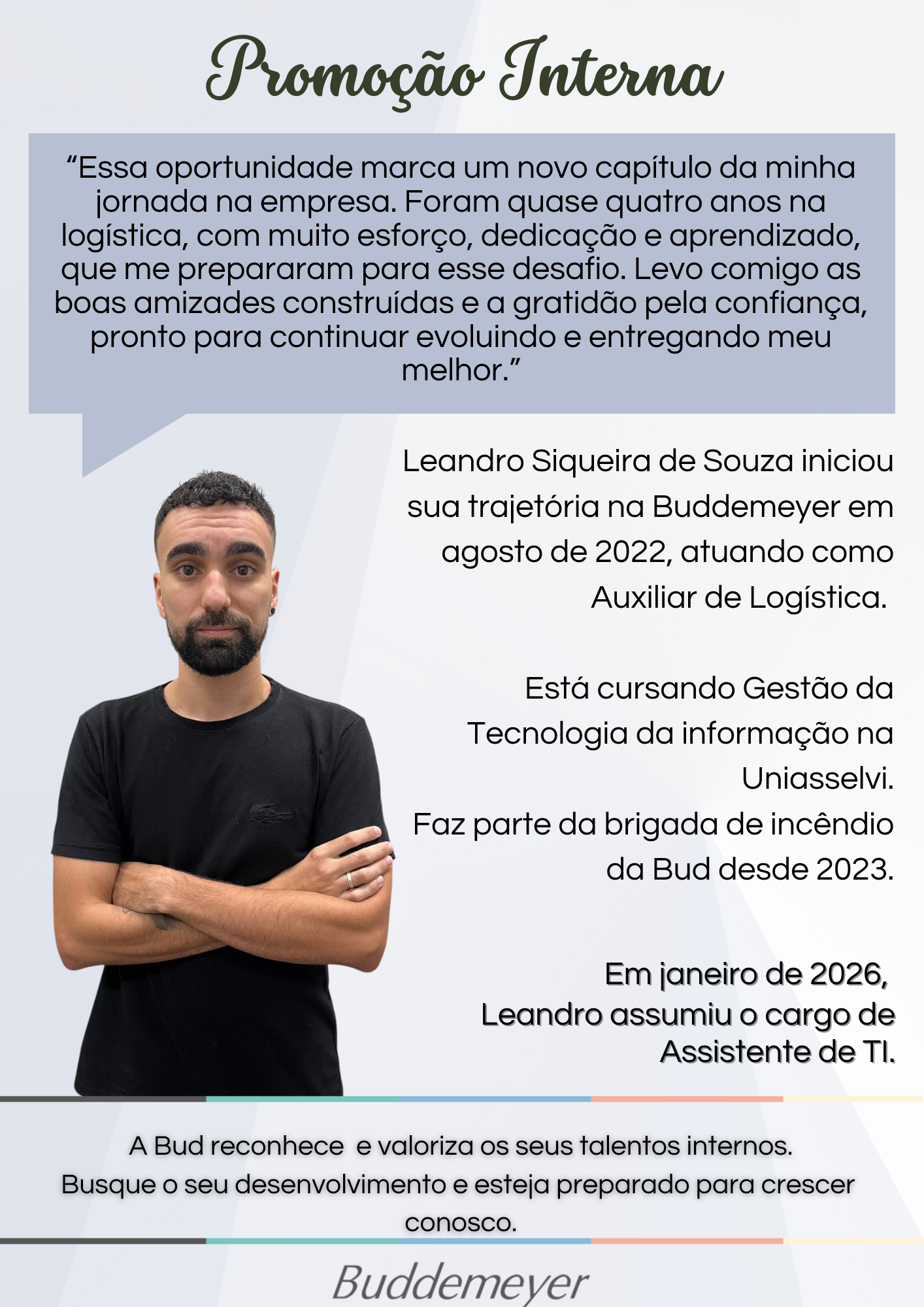 Na Buddemeyer, cada passo é conquista. Confira a trajetória do colaborador Leandro!