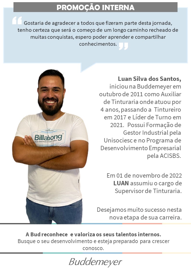 Recursos Humanos • dez 12 • 08:56 Promoção Interna- Luan Silva dos Santos Vamos conhecer a trajetória do nosso colega Luan? Clique no link e confira.