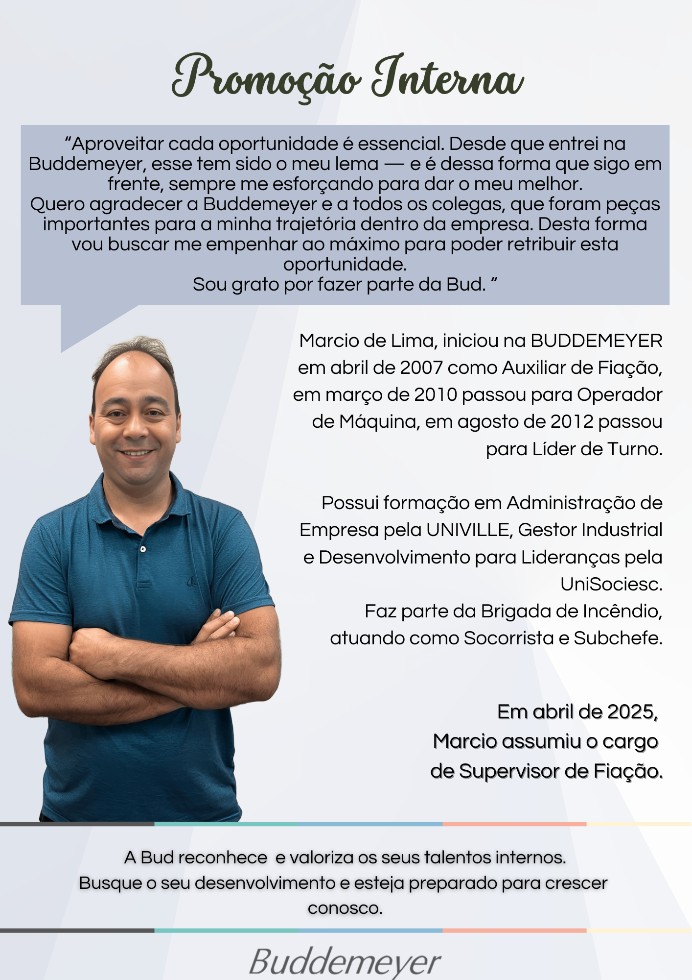 Recursos Humanos • maio 05 • 08:19 Promoção Interna – Marcio de Lima Vamos conferir a trajetória de sucesso do nosso colega Marcio.