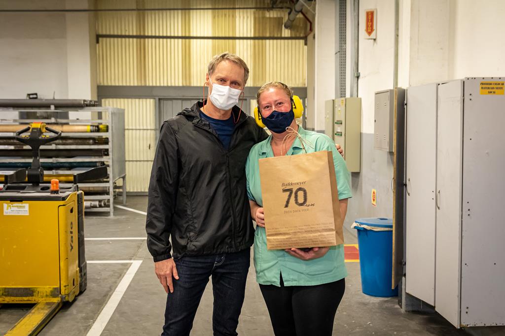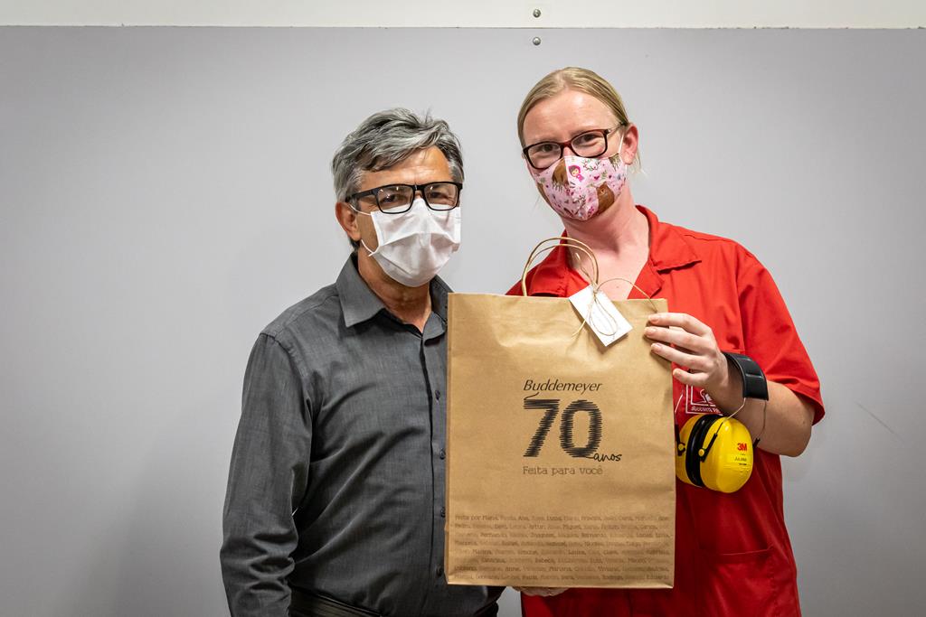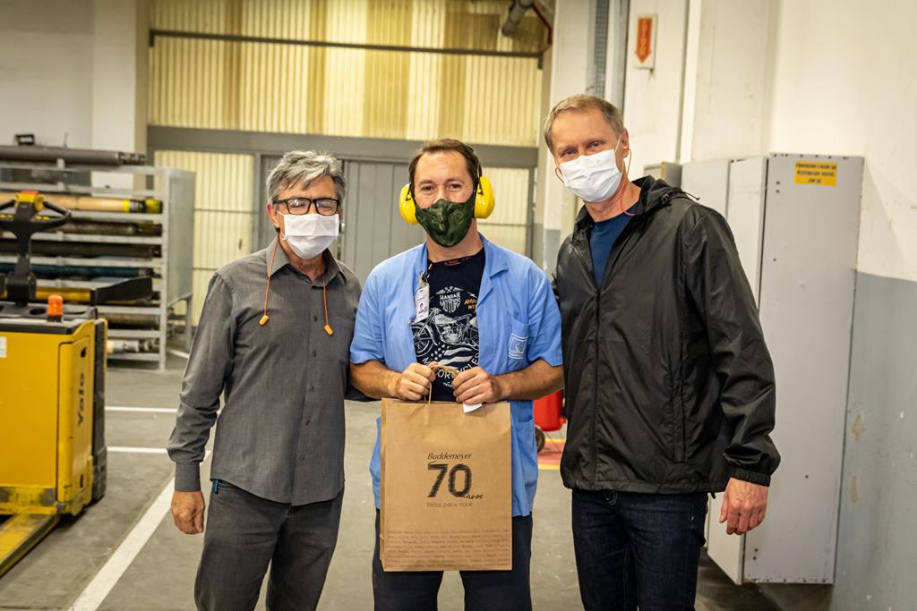 Recursos Humanos • out 26 • 17:29 REGISTROS BUD 70 ANOS! Todos nós estávamos esperando por este momento. Hoje vamos ver as fotos da entrega de presentes em comemoração aos 70 anos da BUD no setor da Tecelagem. Clique no link e confira.
