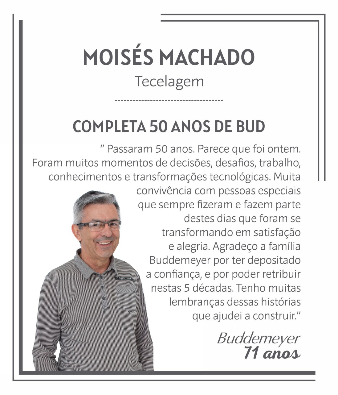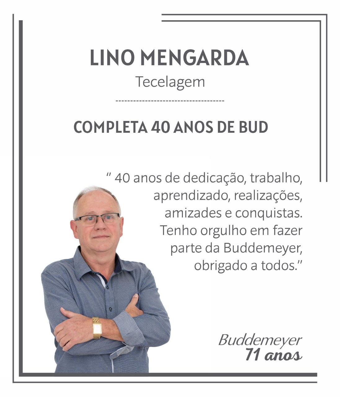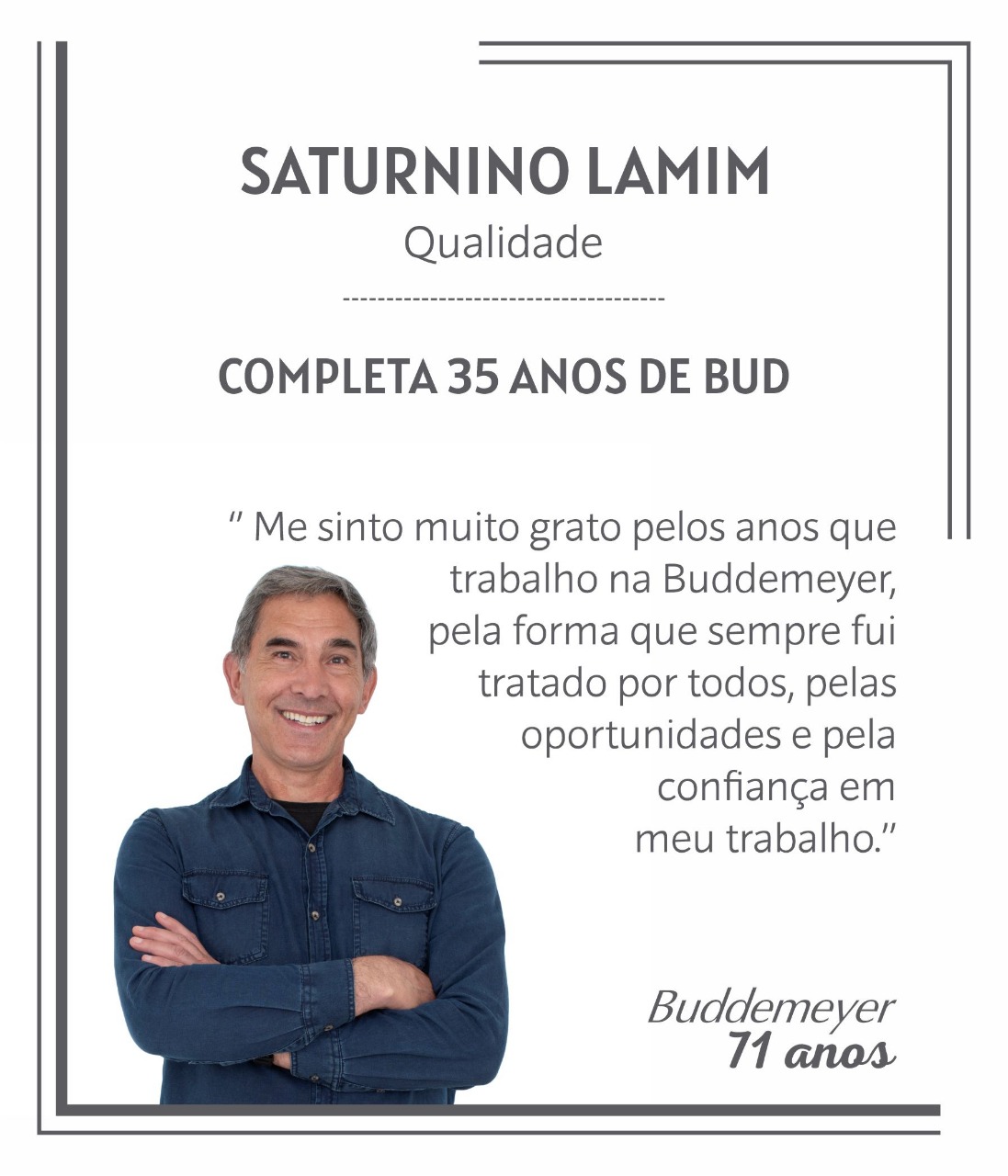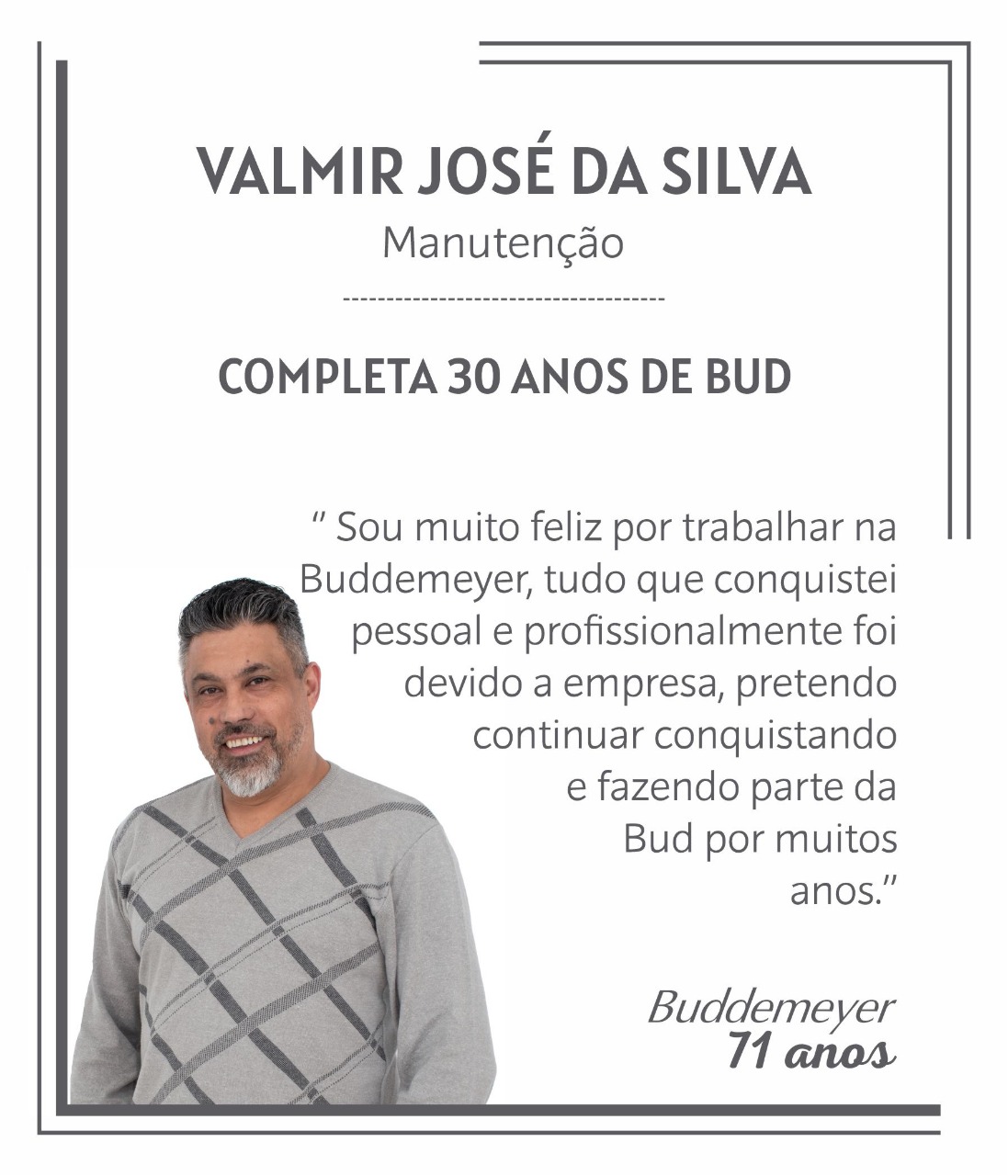 A partir da próxima semana, estaremos promovendo a entrega da premiação para os colaboradores que completaram 15,10 e 05 anos de trabalho na BUD, diretamente nos setores de trabalho.