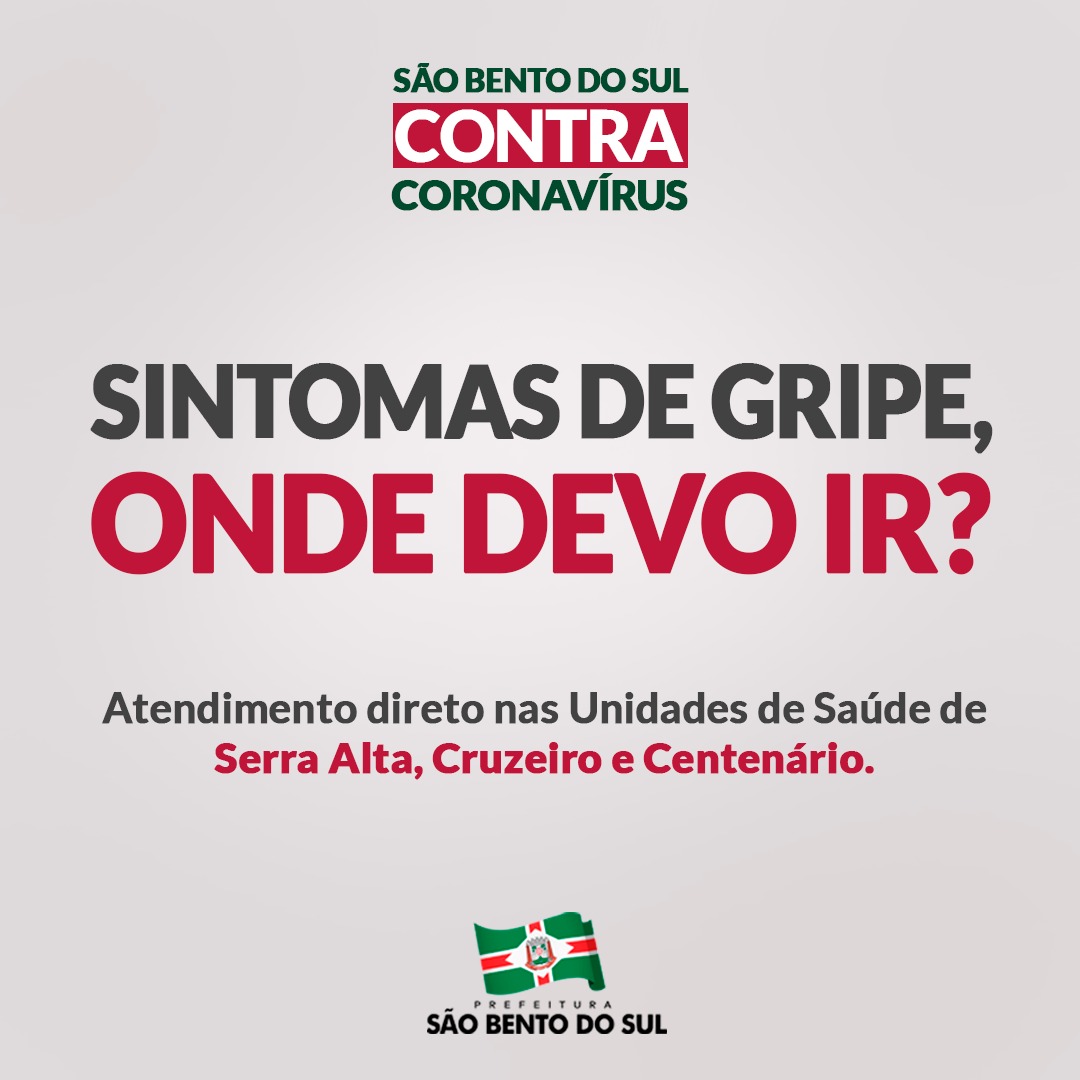 Recursos Humanos • dez 16 • 17:28 Sintomas de Gripe, onde devo ir? Dúvidas de onde ir caso apresente algum sintoma de gripe? Clique aqui e confira as orientações.