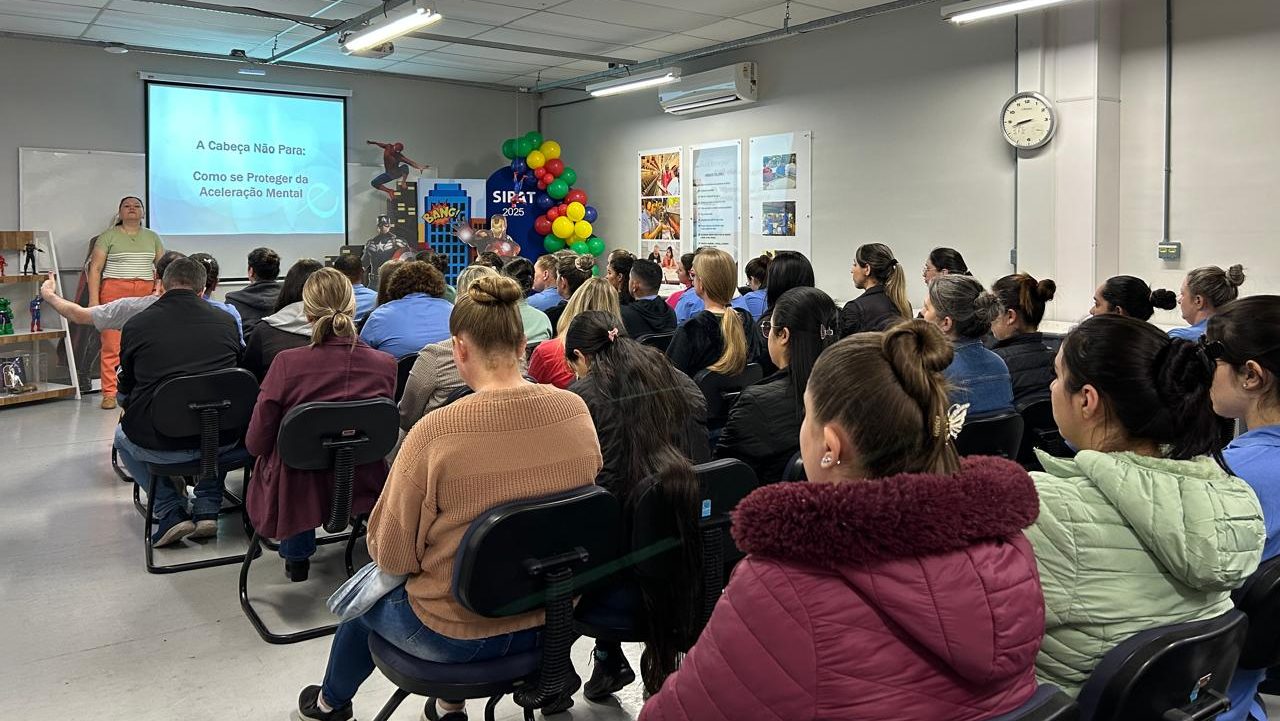 Também tivemos a palestra da psicóloga Elisane Cordeiro, com o tema “A cabeça não para”, que trouxe uma importante reflexão sobre o cuidado com a aceleração nos dias atuais, destacando a importância de desacelerar e cuidar da saúde mental.