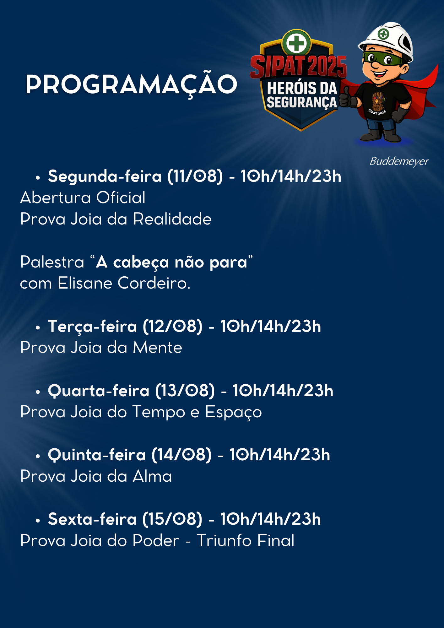 Este ano, para reforçar a importância da prevenção de Acidentes, nossa SIPAT trará uma gincana épica que promete agitar os setores e fortalecer o trabalho em equipe, com o conceito de Super-Heróis e as Jóias do Infinito.