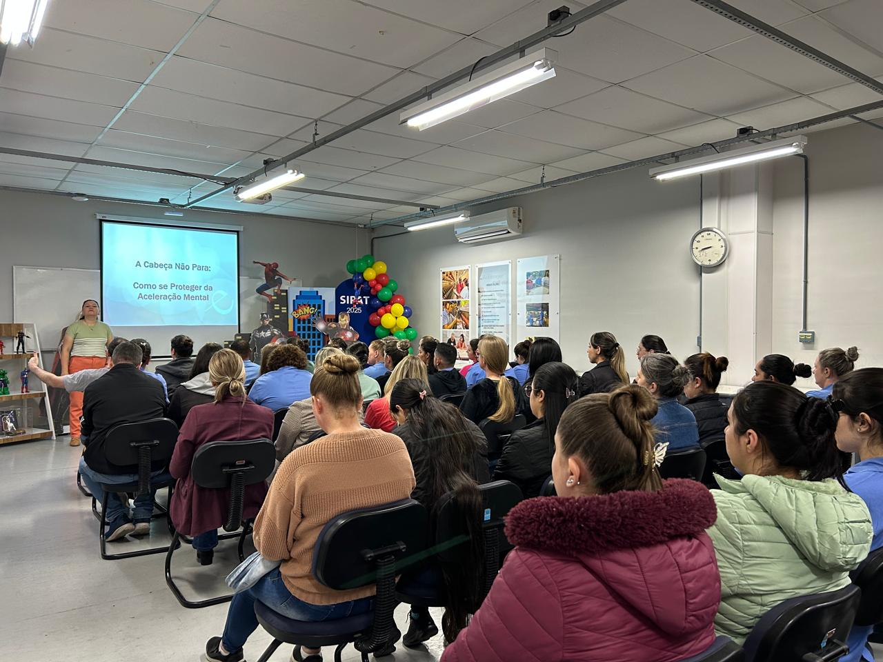 Também tivemos a palestra da psicóloga Elisane Cordeiro, com o tema “A cabeça não para”, que trouxe uma importante reflexão sobre o cuidado com a aceleração nos dias atuais, destacando a importância de desacelerar e cuidar da saúde mental.