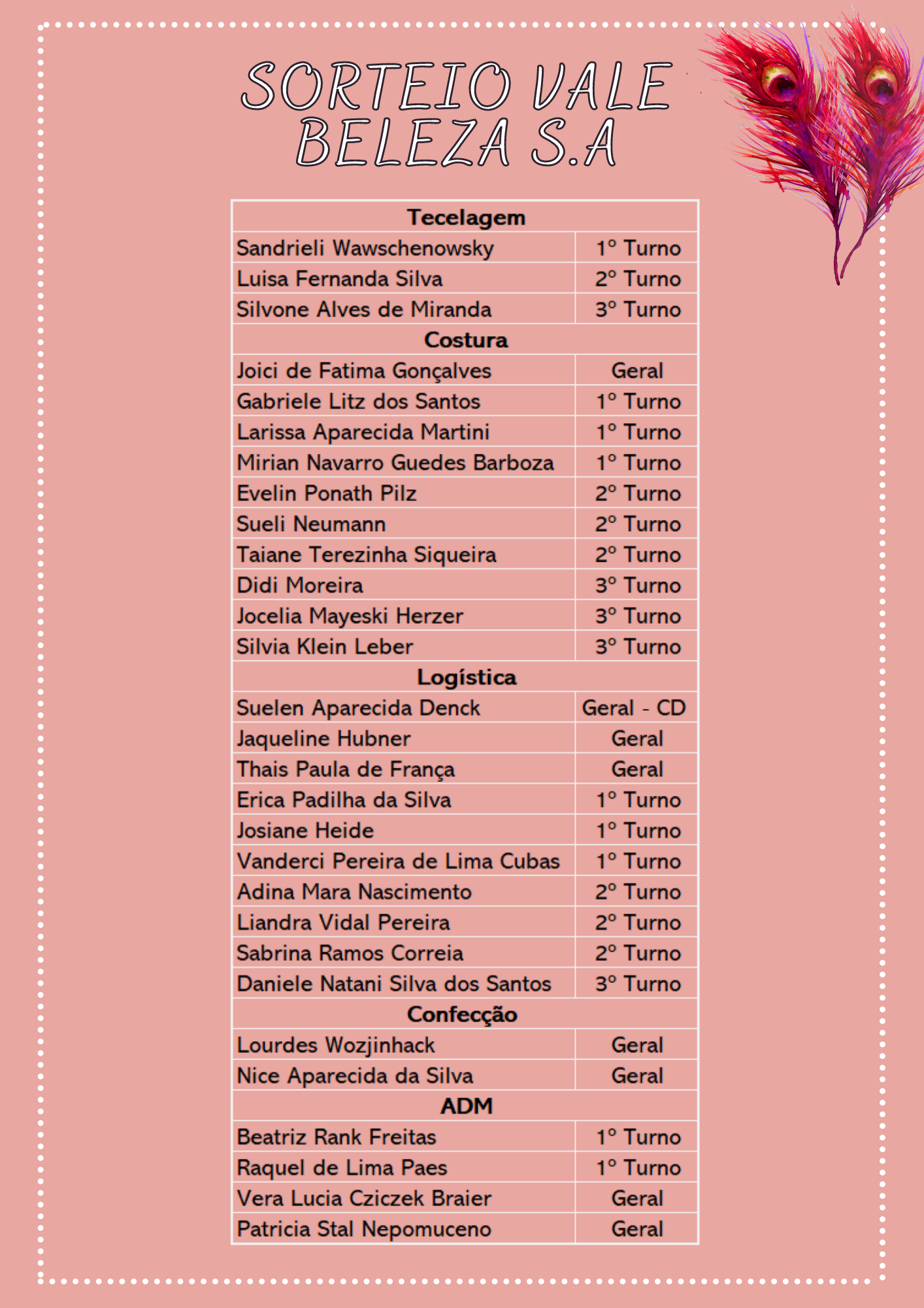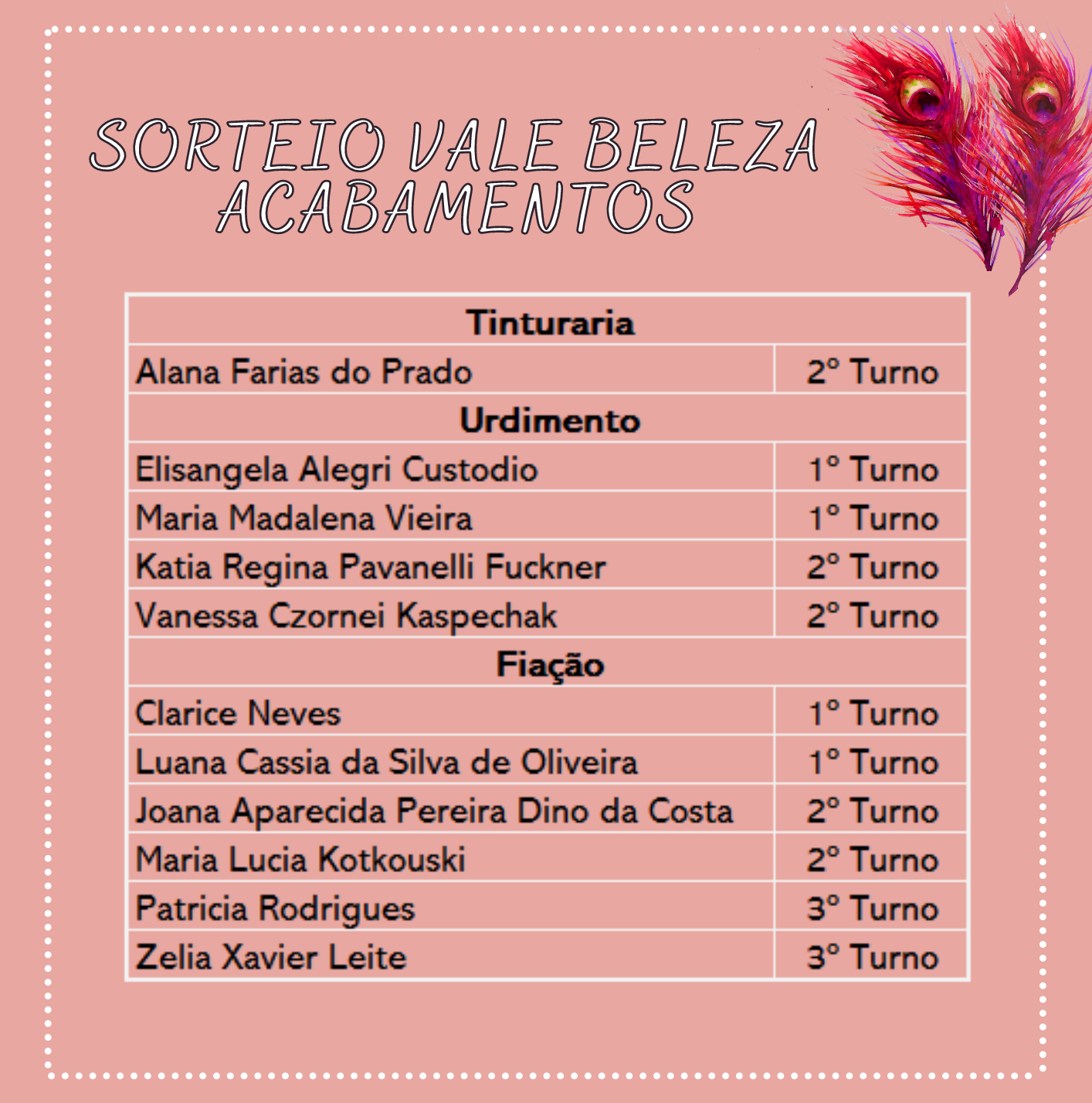 Querem saber quem foram as contempladas do sorteio do vale beleza na PanBelle Centro de Beleza? Clique no link e confira. A retirada do vale deve ocorrer a partir de amanhã (11/10 - terça-feira) no ambulatório. Lembrando que o valor do vale é de R$50,00, o atendimento deve ser agendado pela contemplada pelo telefone (47) 3633-4590.