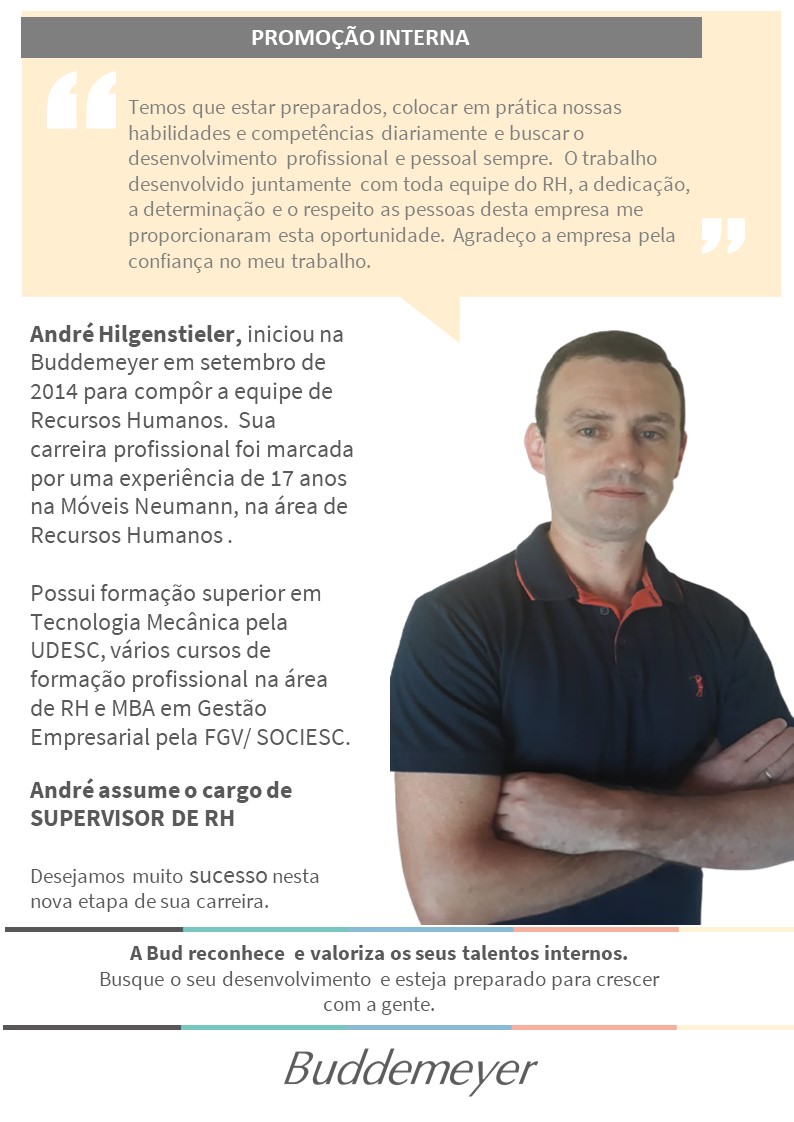 Recursos Humanos • fev 17 • 15:10 Sucesso é sinônimo de muita dedicação, disciplina e determinação Clique aqui e conheça a história do colega André Hilgenstieler.
