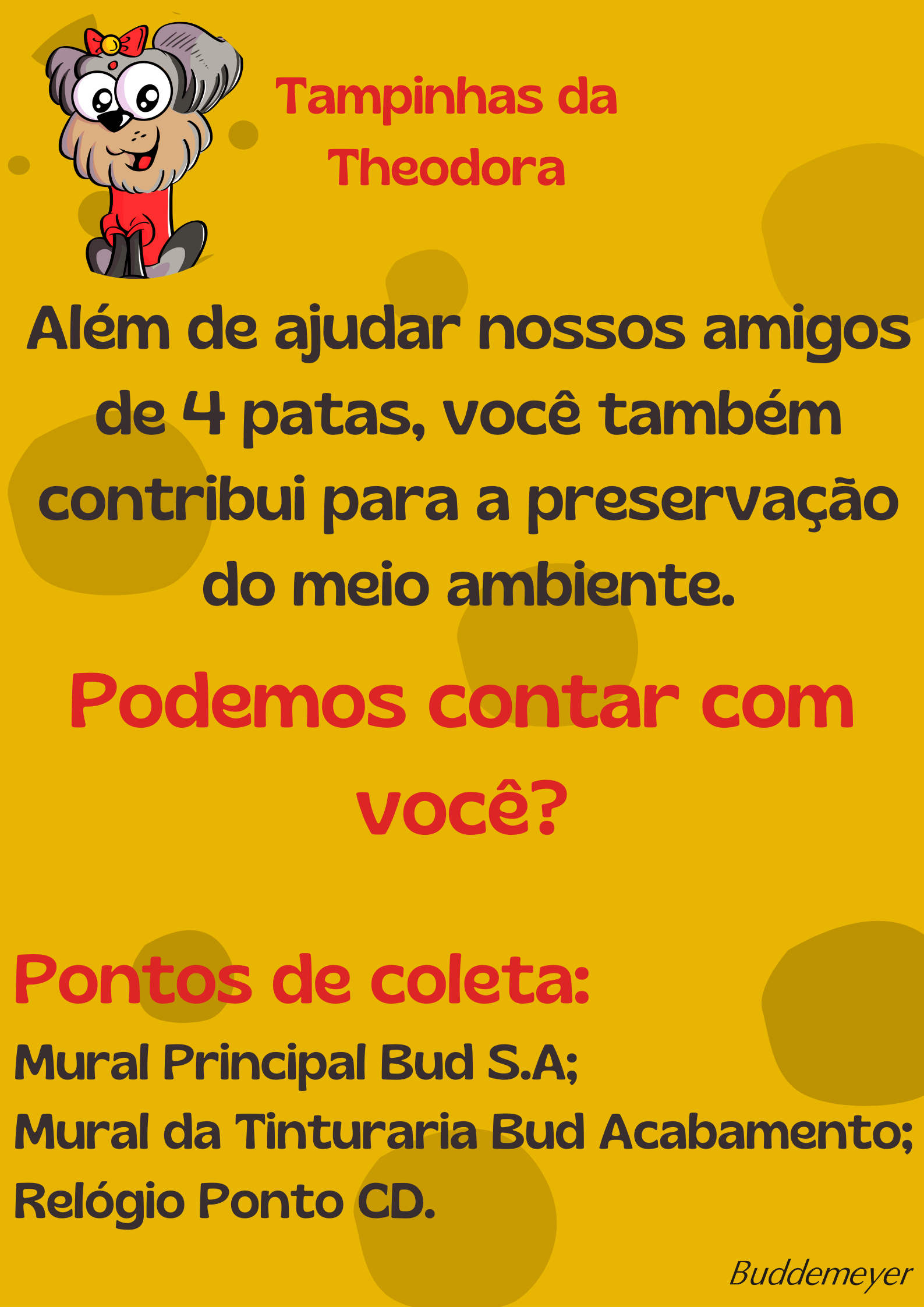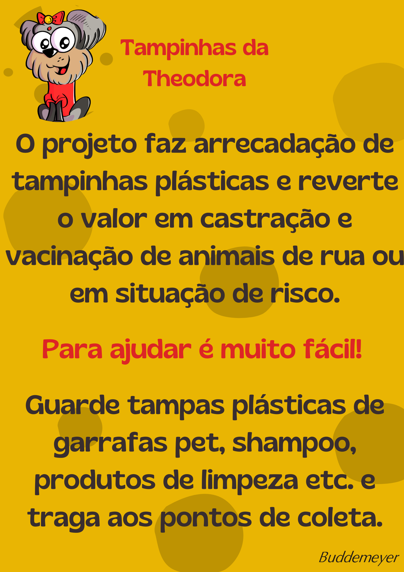 Agora somos parceiros da campanha TAMPINHAS DA THEODORA e precisamos da sua ajuda nesse projeto. Clique no link e veja como você pode contribuir.