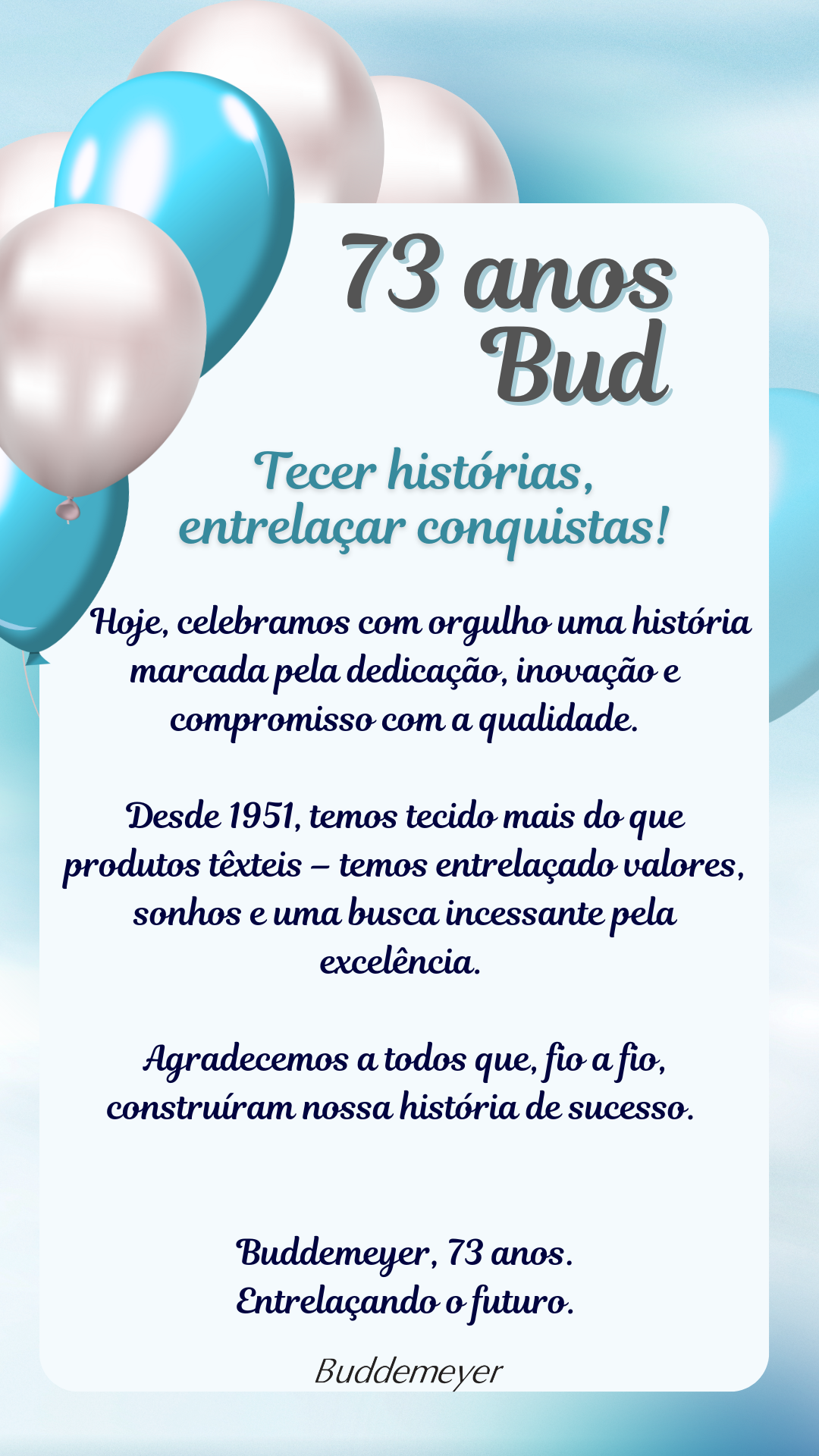 Recursos Humanos • ago 19 • 08:12 Tecer histórias, entrelaçar conquistas! Que este aniversário nos inspire a continuar tecendo um futuro de excelência, sempre unidos pelo compromisso com a qualidade.