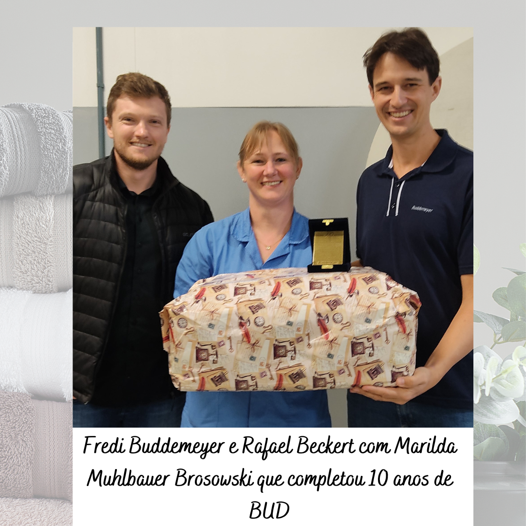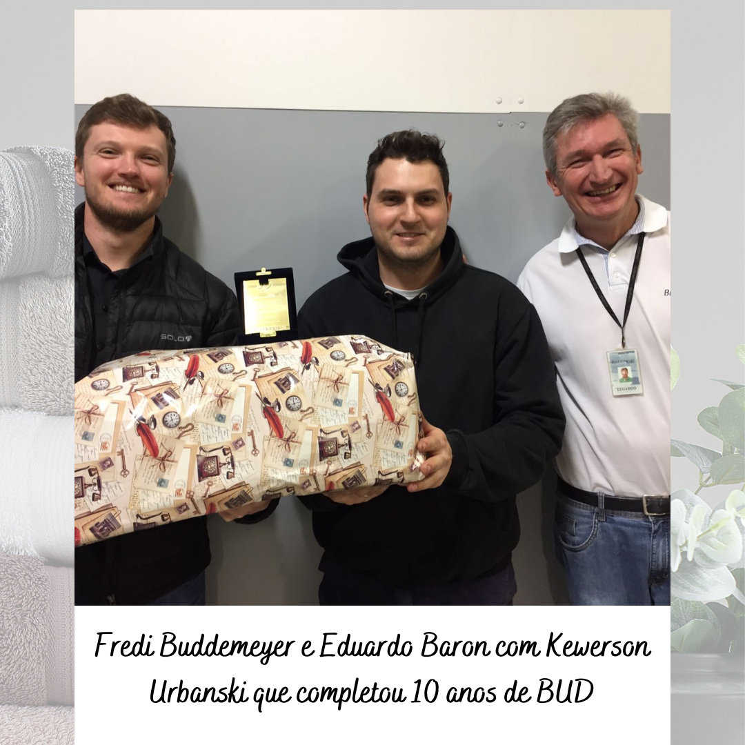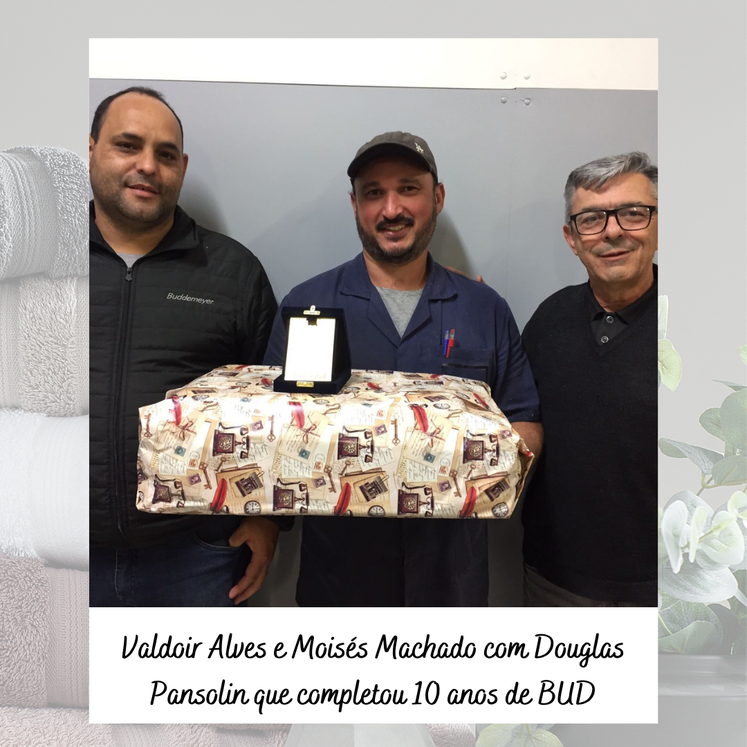 Recursos Humanos • out 24 • 07:59 Tempo de Casa – Tecelagem Confira o registro da entrega dos presentes por tempo de casa dos colaboradores do setor de Tecelagem da Bud S.A.