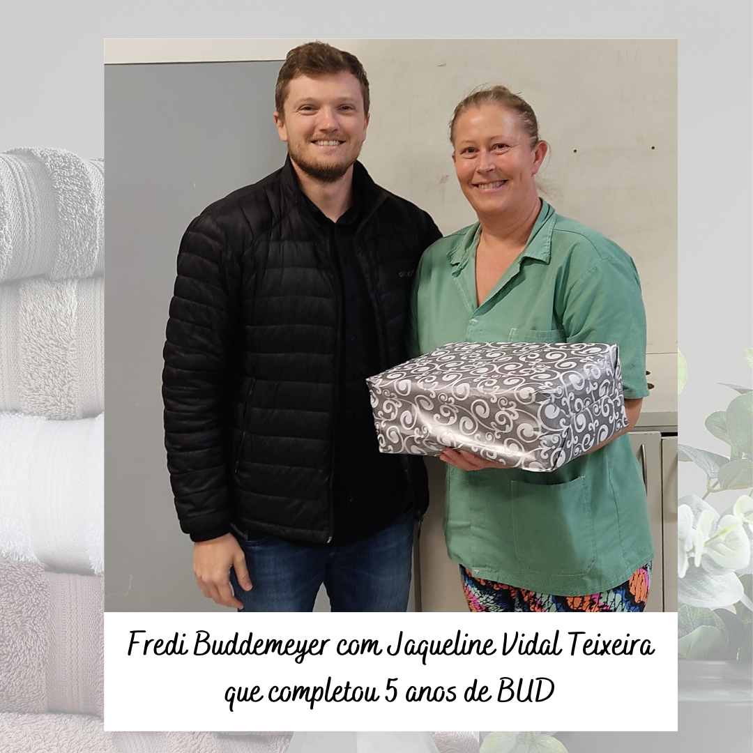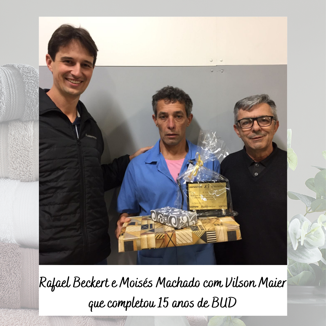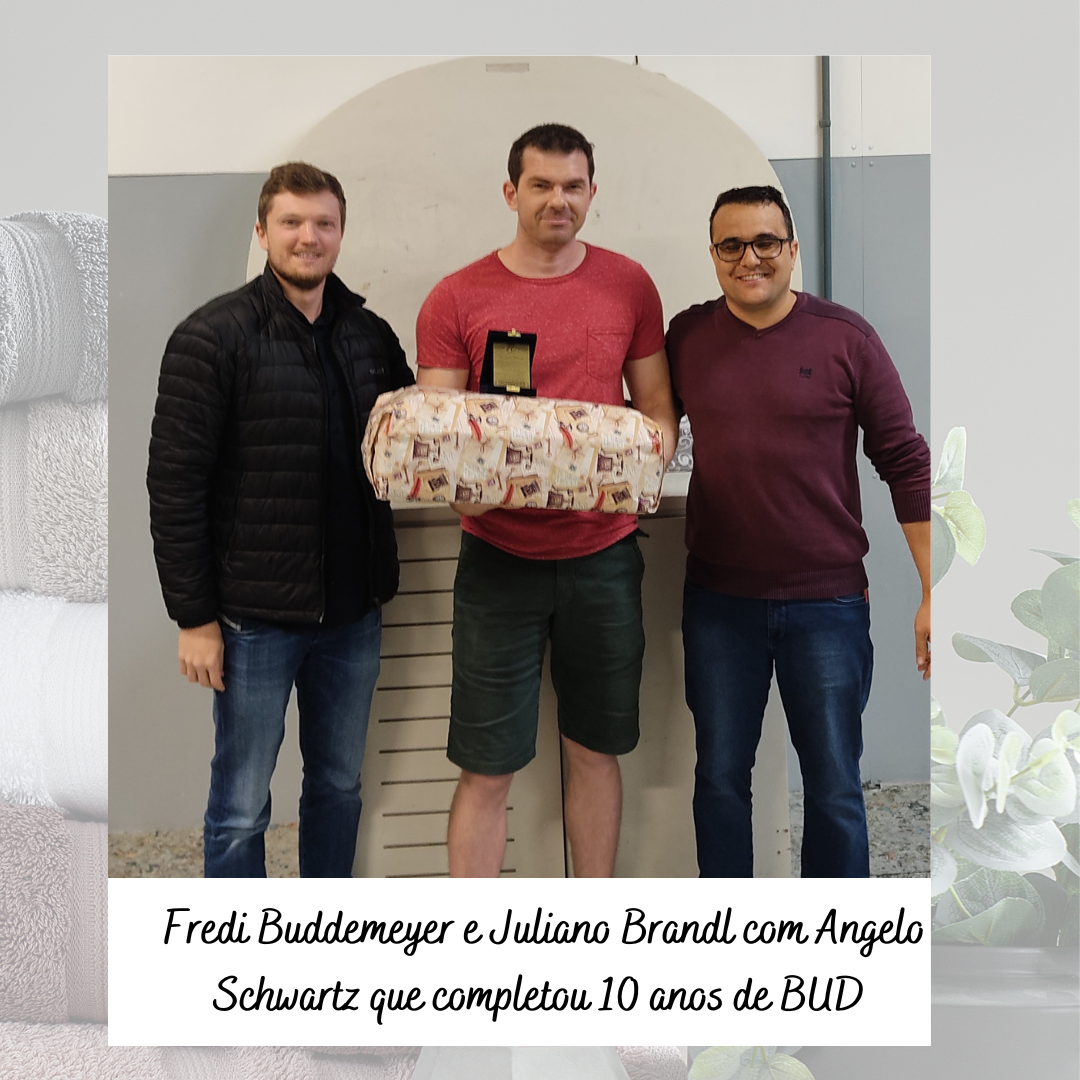 Recursos Humanos • out 24 • 07:59 Tempo de Casa – Tecelagem Confira o registro da entrega dos presentes por tempo de casa dos colaboradores do setor de Tecelagem da Bud S.A.