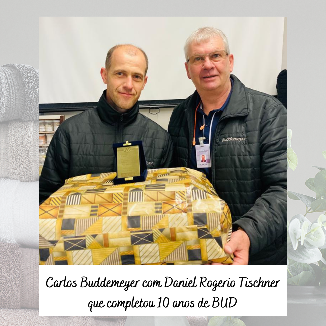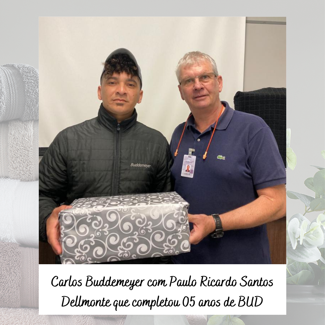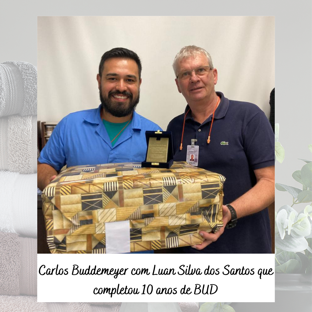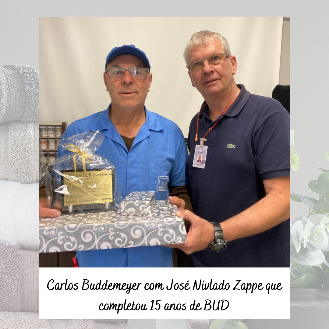 Confira o registro da entrega dos presentes por tempo de casa dos colaboradores do setor da Tinturaria.