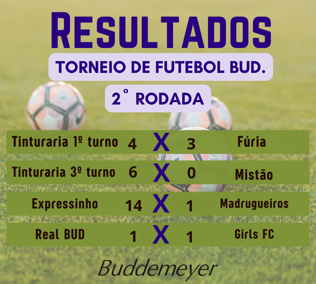 Recursos Humanos • jun 05 • 11:10 Torneio Interno de Futebol- 2º Rodada. Confira os resultados e os registros na 2º Rodada do Torneiro Interno de Futebol. Times Femininos – GIRLS FC x REAL BUD EXPRESSINHO FÚRIA MADRUGUEIROS MISTÃO TINTURARIA 1º TURNO TINTURARIA 3º TURNO