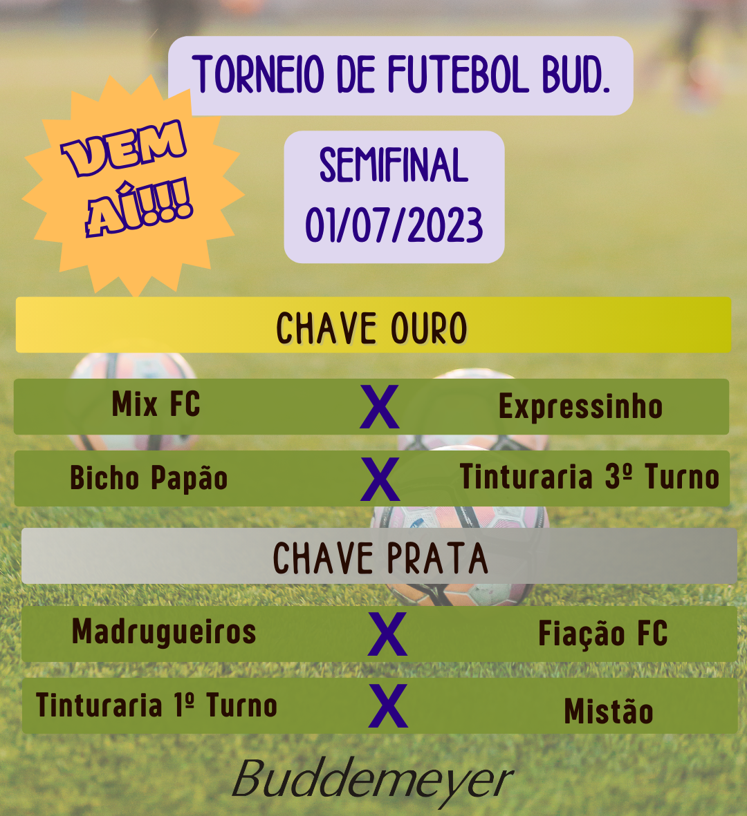 Recursos Humanos • jun 23 • 13:31 Torneio Interno de Futebol – Semifinal No dia 1º de julho, acontece a Semifinal do Torneio Interno de Futebol. Confira as disputas (em breve divulgaremos os horários de jogos).