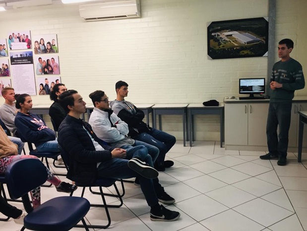 A recepção dos alunos e do professor Nelson Zinke, bem como, apresentação da empresa, sua história, modelo de gestão, programas e politicas foi realizado pela gestora Liria Sebem Nunes. E a visitação foi acompanhada pelos colaboradores Carlos Gerker, da fiação, Adriano Schroth, da tinturaria e Josiane Machado, da área de segurança do trabalho.
